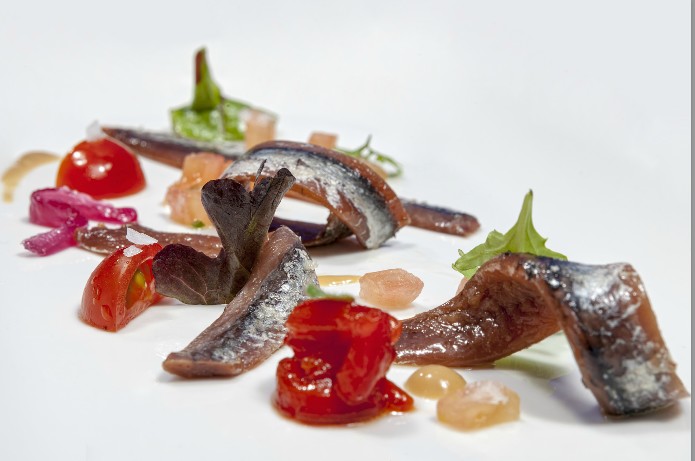 Además de guiños a los ochenta, sobra decir que en Cañadío bordan las elaboraciones de la cocina tradicional, desde el cocido montañés a las anchoas de Santoña (en la imagen) pasando por las croquetas de Potes o los guisos de pescado.