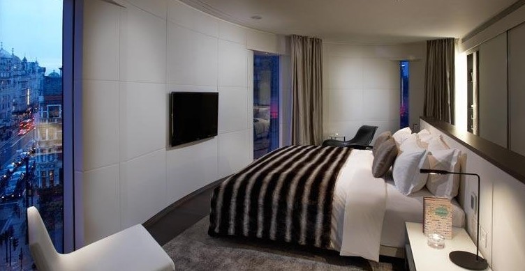 Ubicado en Londres, el hotel ha sido ejecutado por el estudio del famoso arquitecto, que ha impuesto su sello incluso en los distintos accesorios y elementos decorativos.