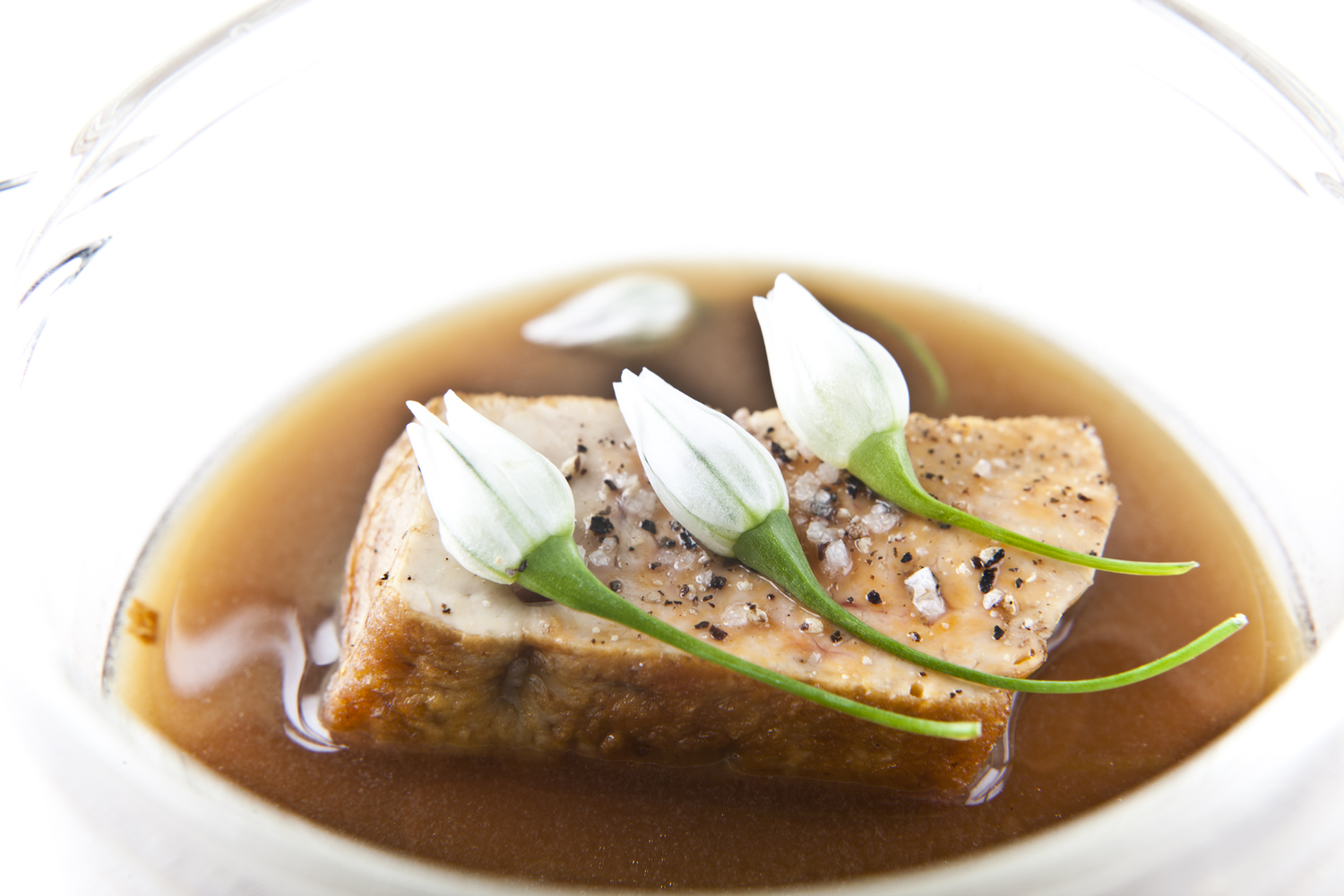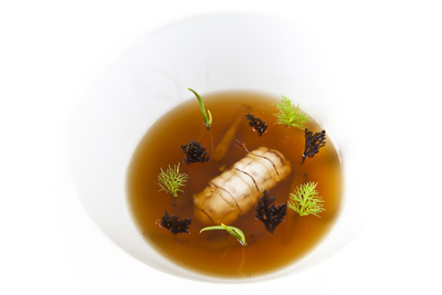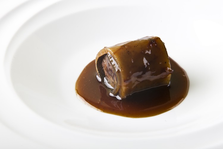 Otro ejemplo son las Infiltraciones de Almadraba. ¡Un tuétano de atún en una vaca!. Todos los platos son los de su renovación en 2012. Los anteriores forman parte ya de del libro CDM-Chef del Mar.
