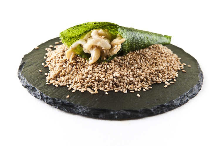 El temaki típico de la comida oriental se adapta a las necesidades Y ESENCIAS de Cádiz, fruto de la investigación del chef del mar.