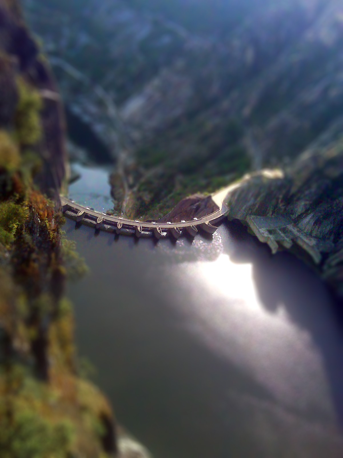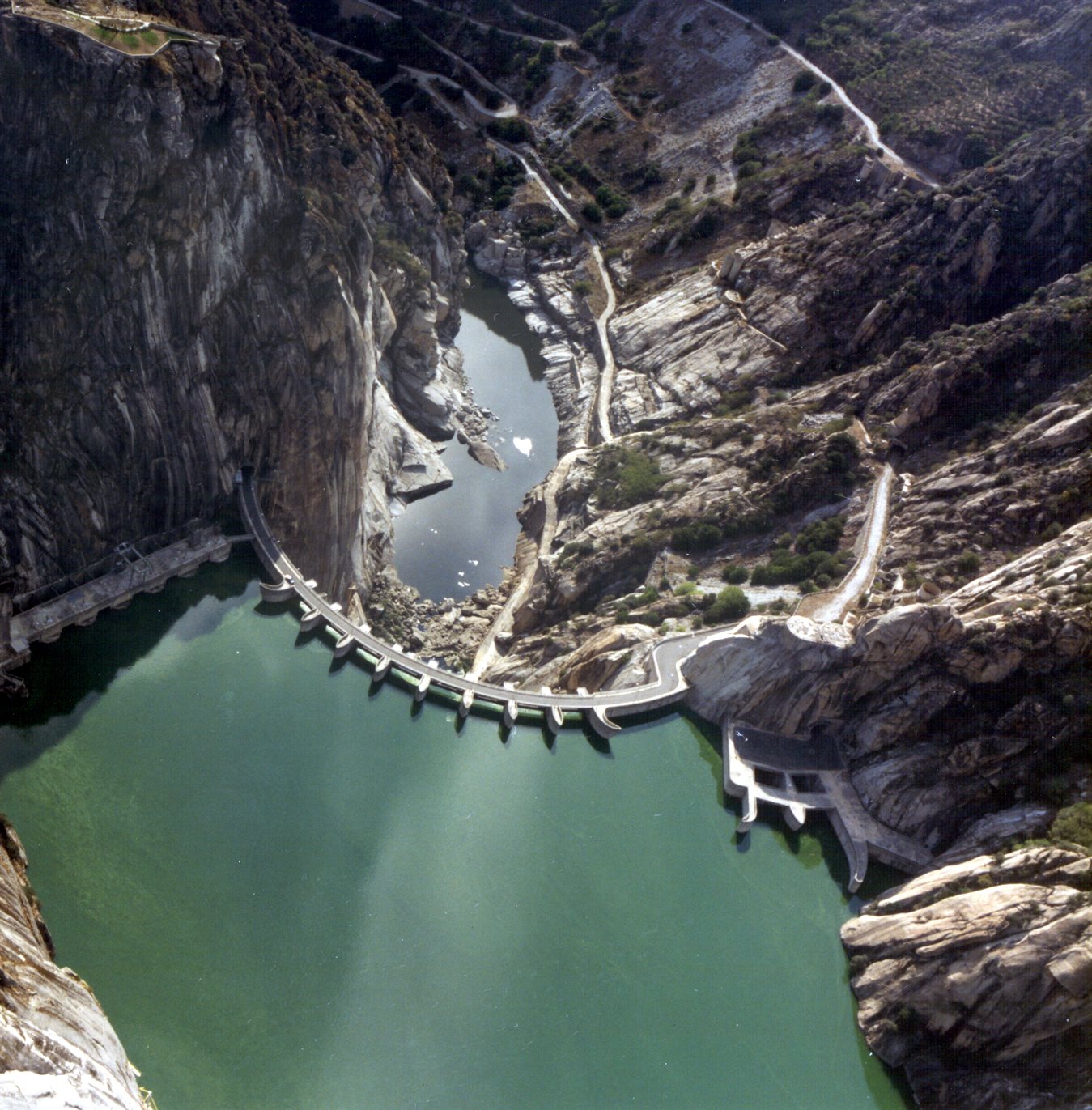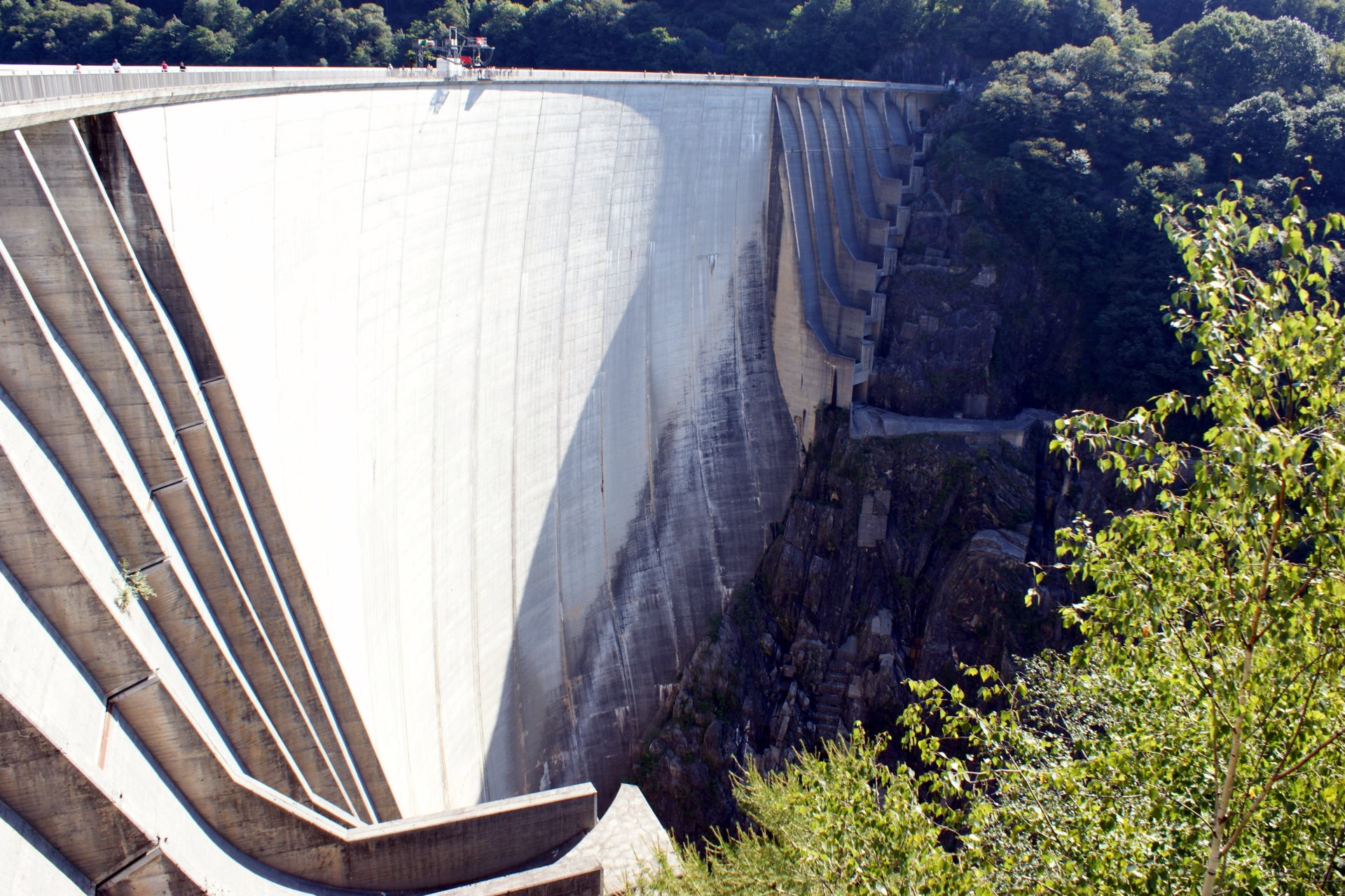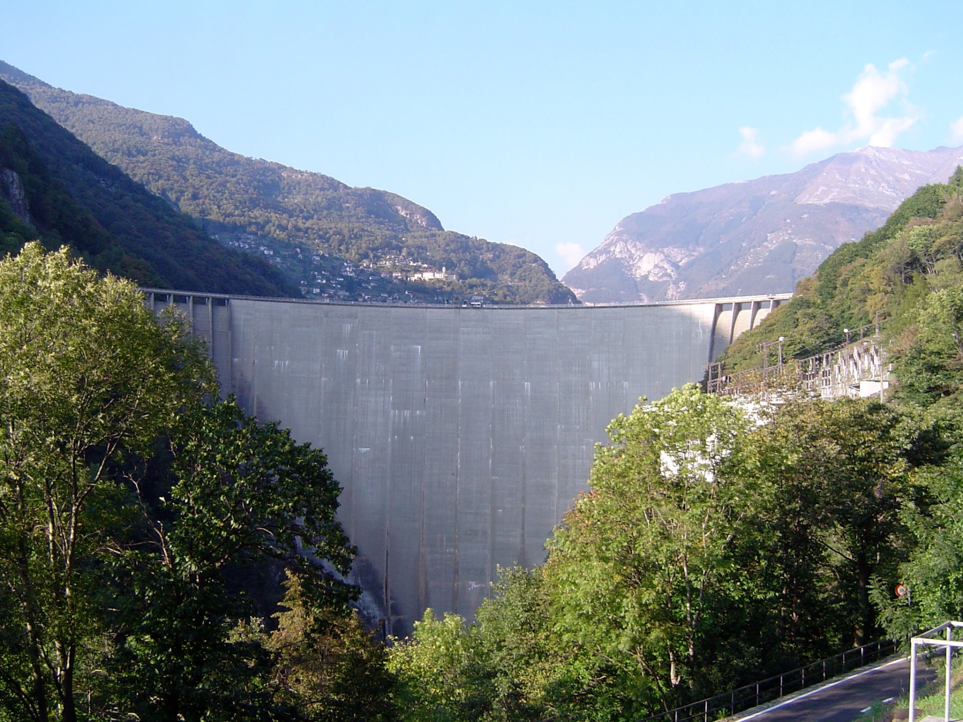 Terminada en 1965, es una presa en arco muy delgada y elegante, para la que se usó mucho menos hormigón del habitual. En ella se rodó el salto de la escena inicial de Golden Eye.