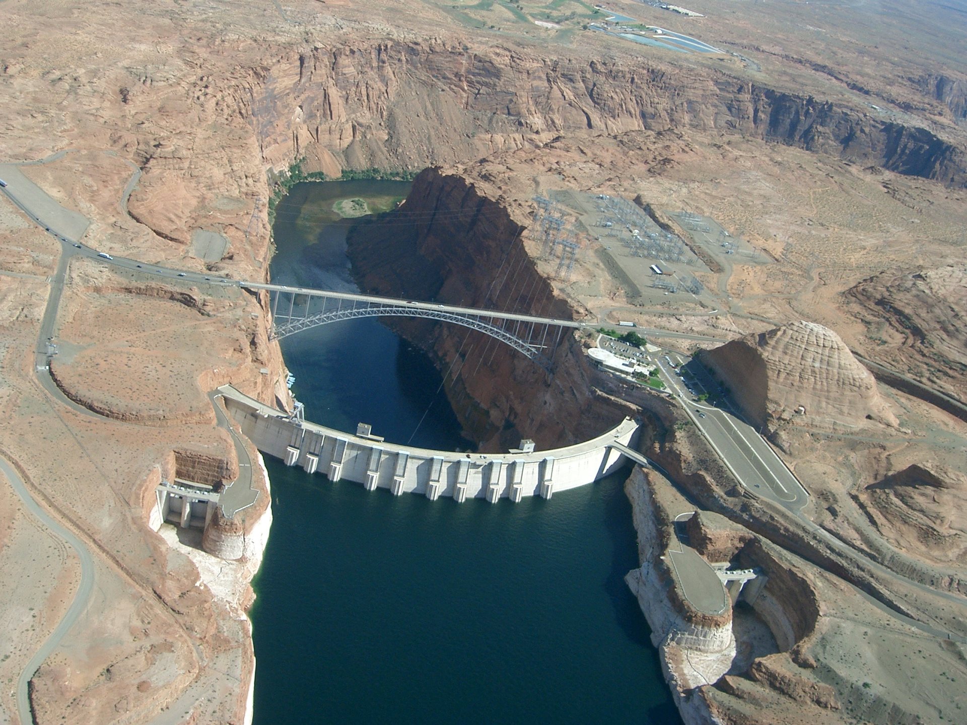 Situado más arriba del cauce del río Colorado que el Gran Cañón, es la segunda gran presa del río después de la Hoover. Es una presa en arco, cuya geometría le permite emplear la fuerza del agua contra ella para desviar su empuje a los dos lados del cañón.