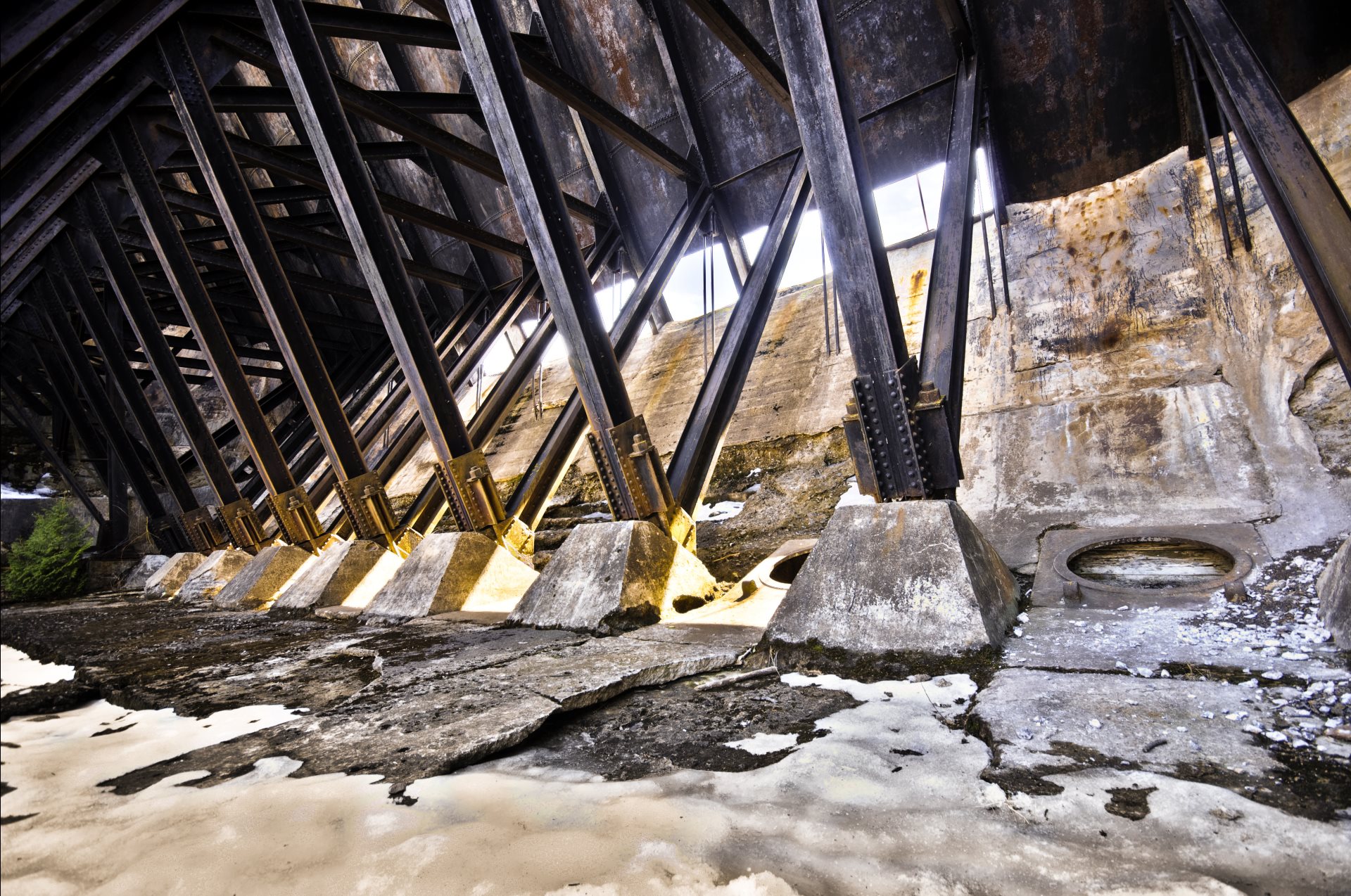 Construida en 1901, su objetivo era proveer de agua a molinos y minas cercanas. Emplea contrafuertes para soportar el peso del agua. Tras entrar en desuso, se la agujeró en 1979 para evitar que soportara mucho peso y pudiera venirse abajo.