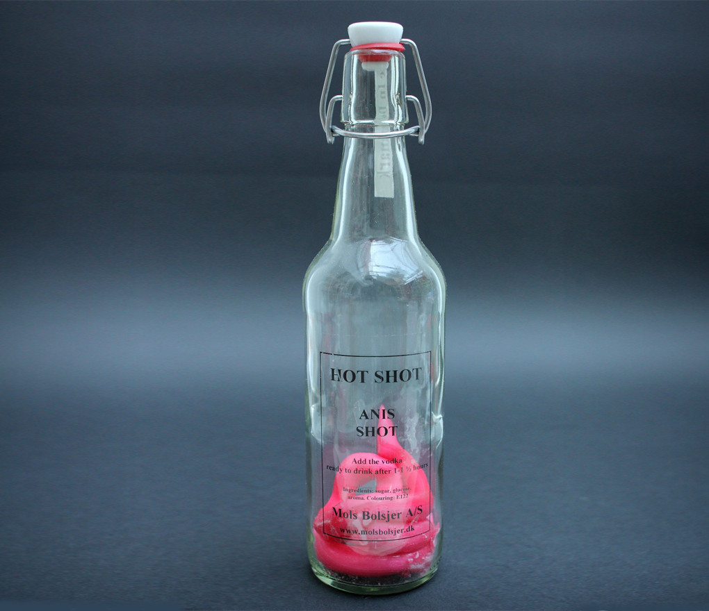 ¿Qué tal unos chupitos elaborados con el destilado favorito de cada uno y los sabores más frescos. La botella contiene un caramelo de anís, frambuesa, piña, grosella... Sólo hay que añadir la bebida.