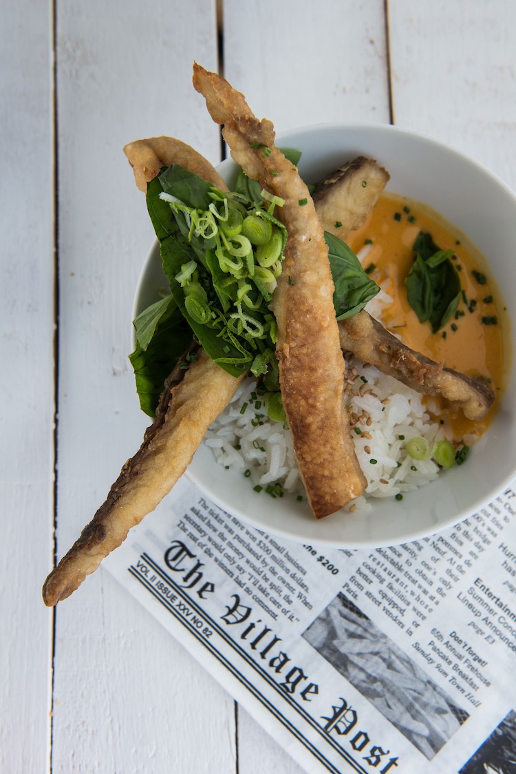 Pero no podemos dejar el restaurante sin mostrar al menos un par más de sus platos: como estos falsos muslitos de pollo con chile.