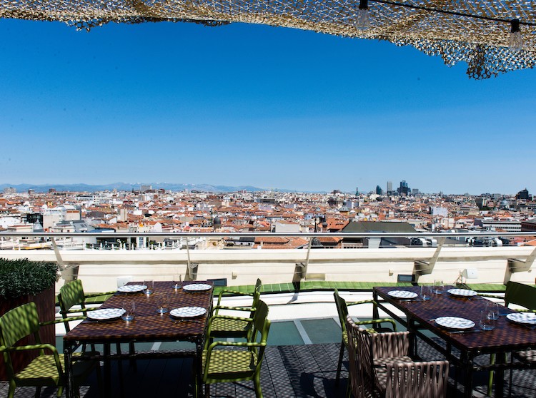 Durante todo el verano ha sido la mesa de moda en la capital gracias, en parte, a una de las mejores vistas de la capital,360 º sobre los tejados de Madrid.