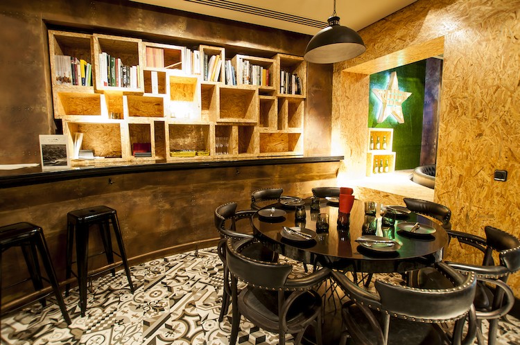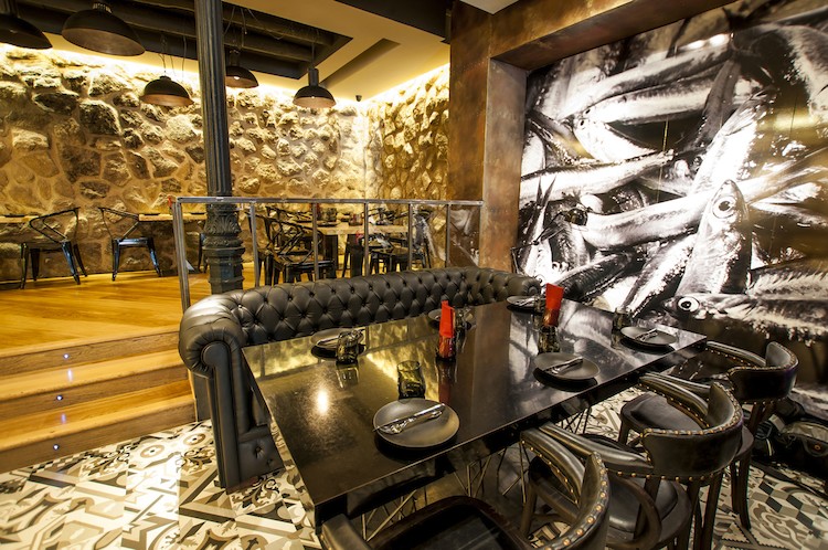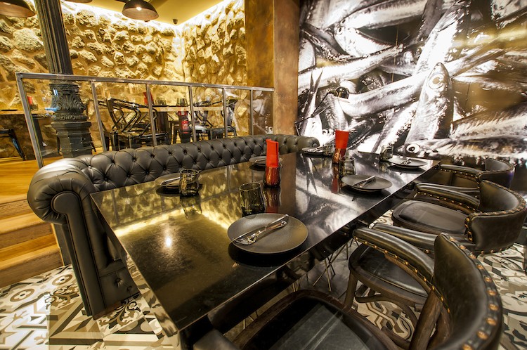 La decoración es obra de Eva Palao, al igual que la del local de Huertas, que entremezcla lo moderno con lo clásico, como se aprecia en sus grandes vinilos, del artista Roger Casas. Libros de cocina, latas de conserva, una preciosa bodega con más de 30 referencias y exclusivas mesas acompañadas de bonitas sillas y sofás, son otros de los objetos del local.