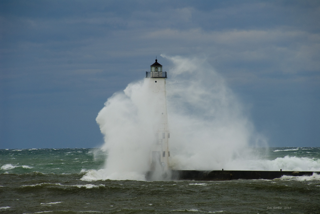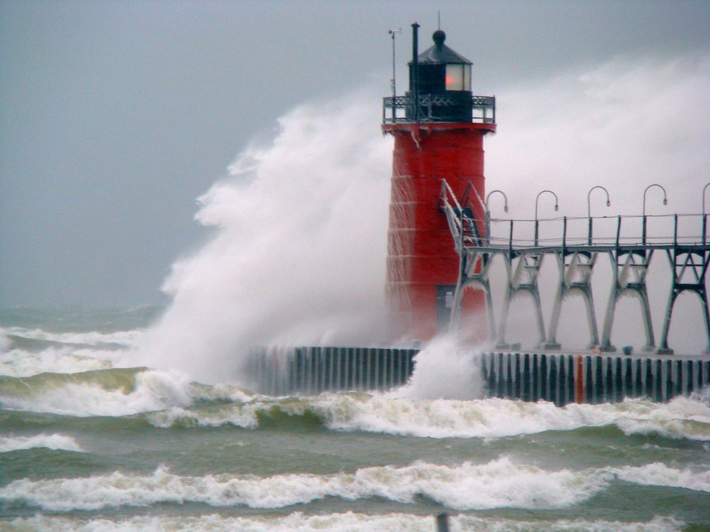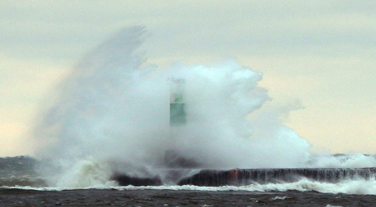 Una gigantesca ola barre el faro en el canal Muskegon Lake, en el Lago Michigan. Los servicios meteorológicos midieron olas de más de seis metros en la zona durante esa tormenta, el pasado 18 de noviembre