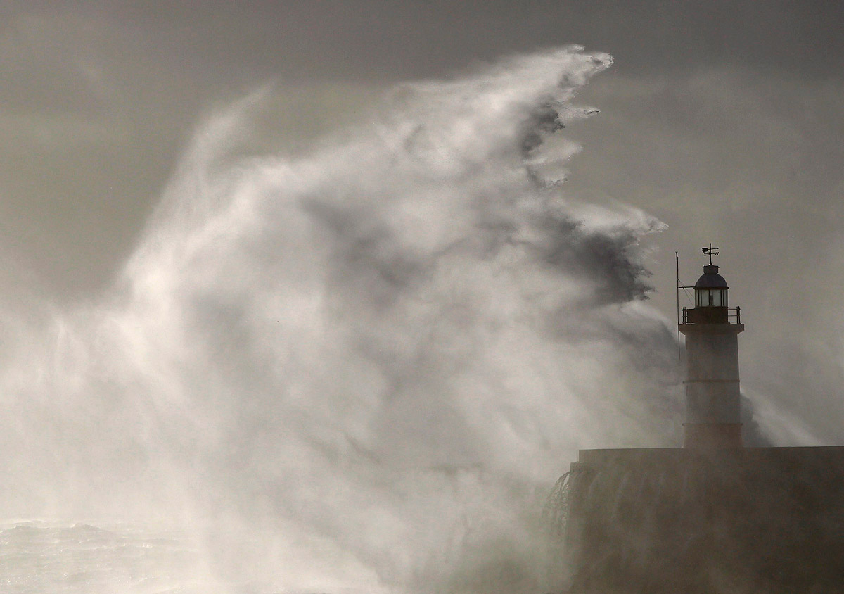 El faro de Seaham Haurbour, en el condado de Durham, Gran Bretaña, en una marea alta que tuvo lugar durante unas inundaciones en el mes de febrero de este mismo año. Para que se hagan una idea del tamaño de las olas, el faro tiene 10 metros de altura