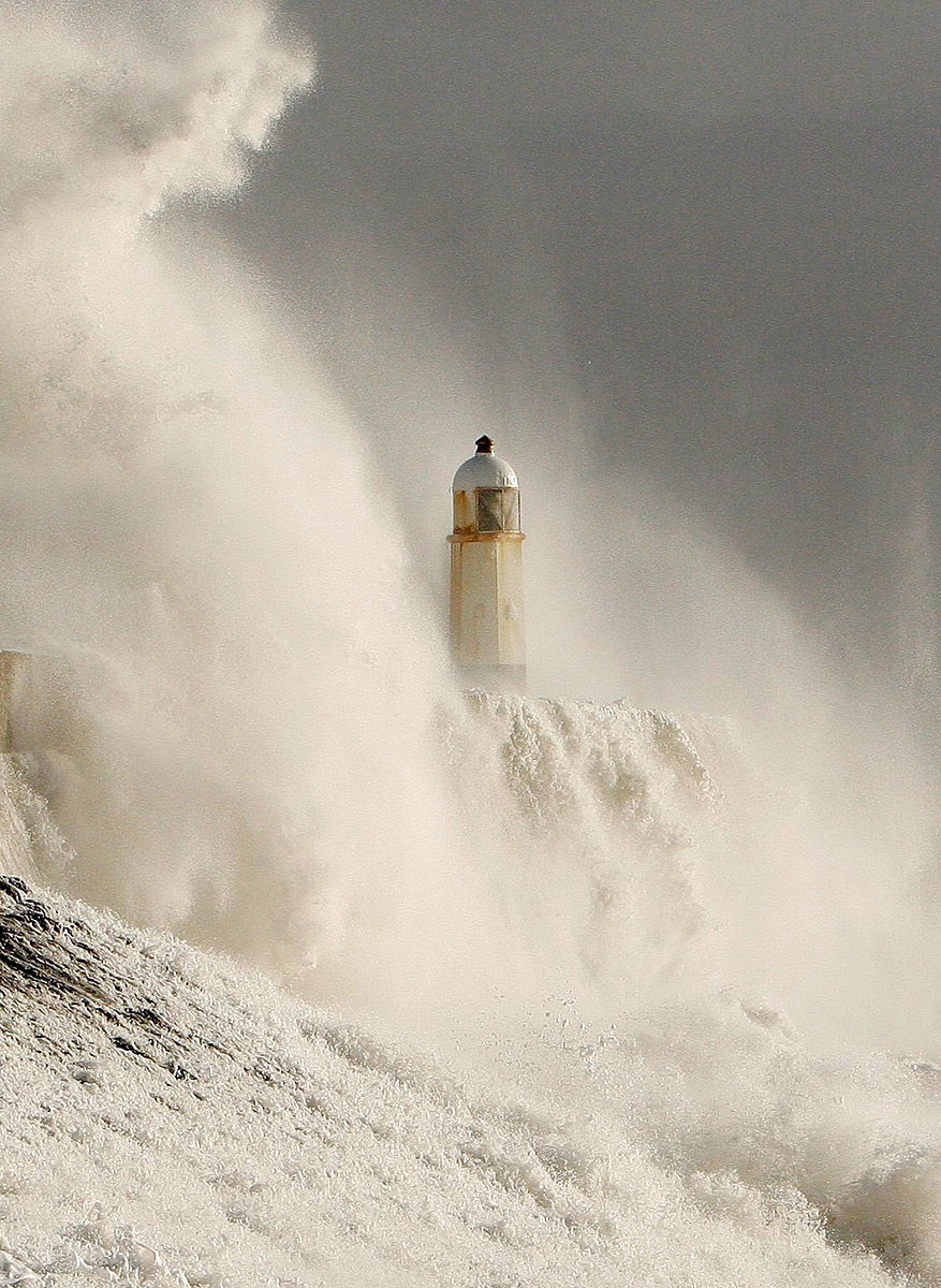 El faro de Porthcawl, en el sur de Gales, es uno de los que habitualmente se ven sometidos a un durísimo oleaje, pero en pocas ocasiones las imágenes son tan impresionantes como en esta tormenta en enero de 2012