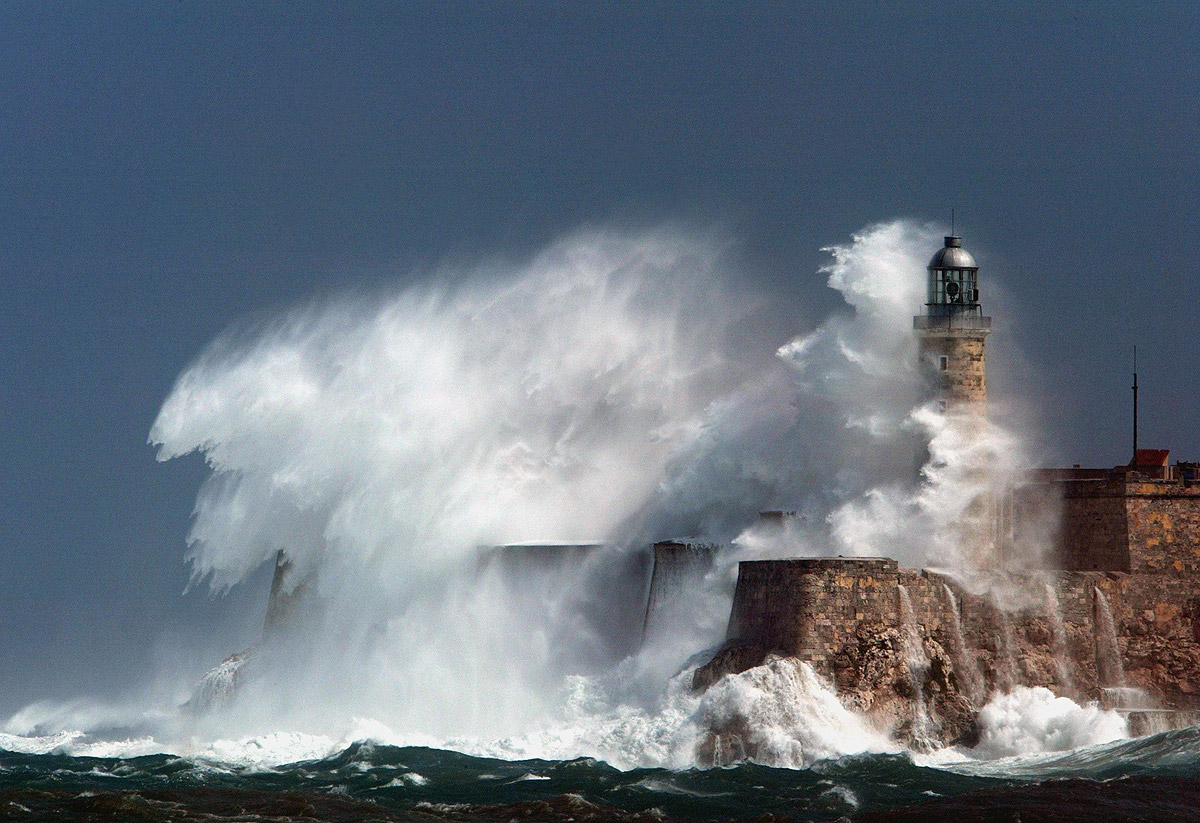 No todas las olas espectaculares, ni los faros hermosos, están en el Canal de la Mancha o Europa: en La Habana también se pueden tomar imágenes como esta, captada en octubre de 2005, cuando unas inundaciones paralizaron -aún más- la ciudad
