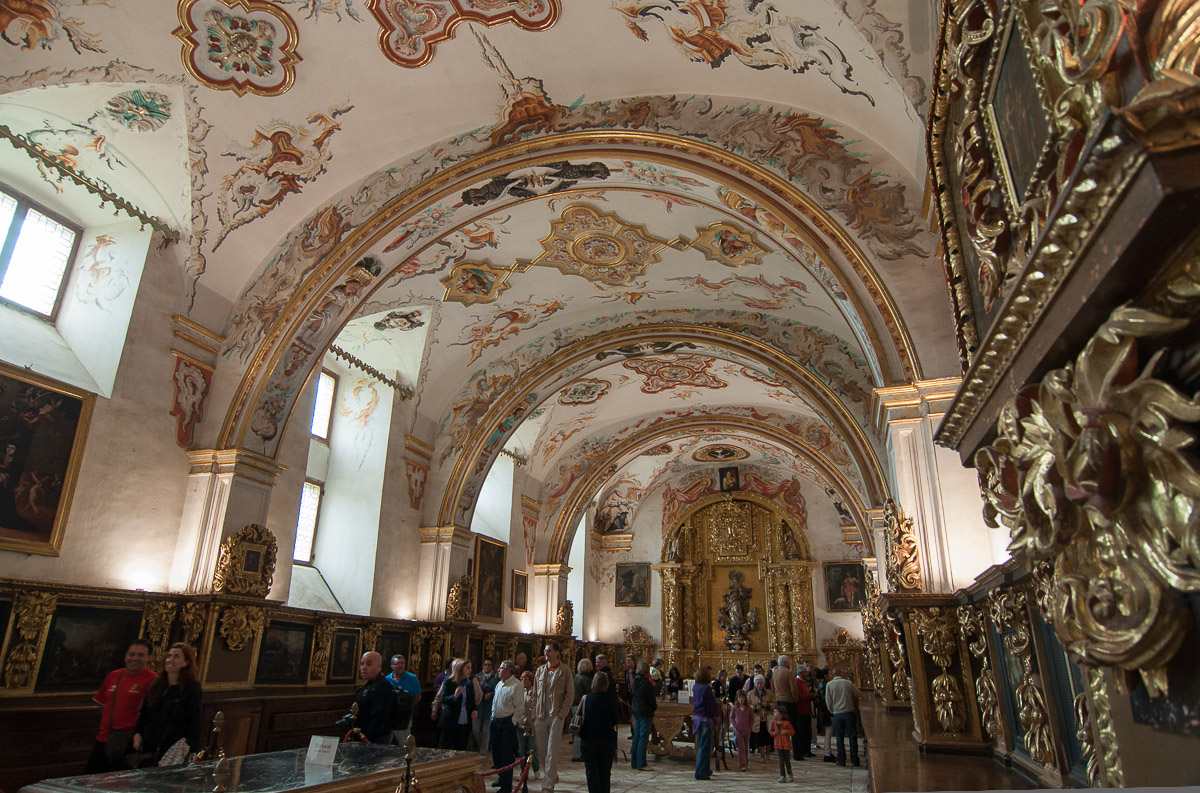 La sacristía, con una riquísima decoración, es una de las estancias más admiradas del monasterio de Yuso