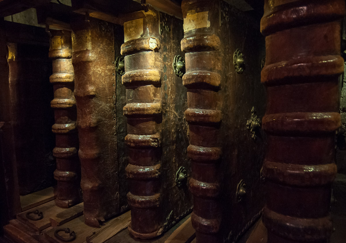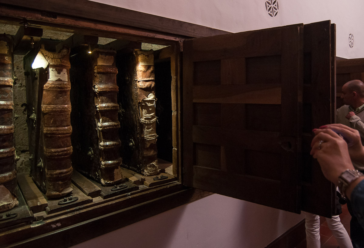Así son los espacios en los que se guardan los enormes cantorales, pensados obviamente para poder usarse sin dificultad a una buena distancia