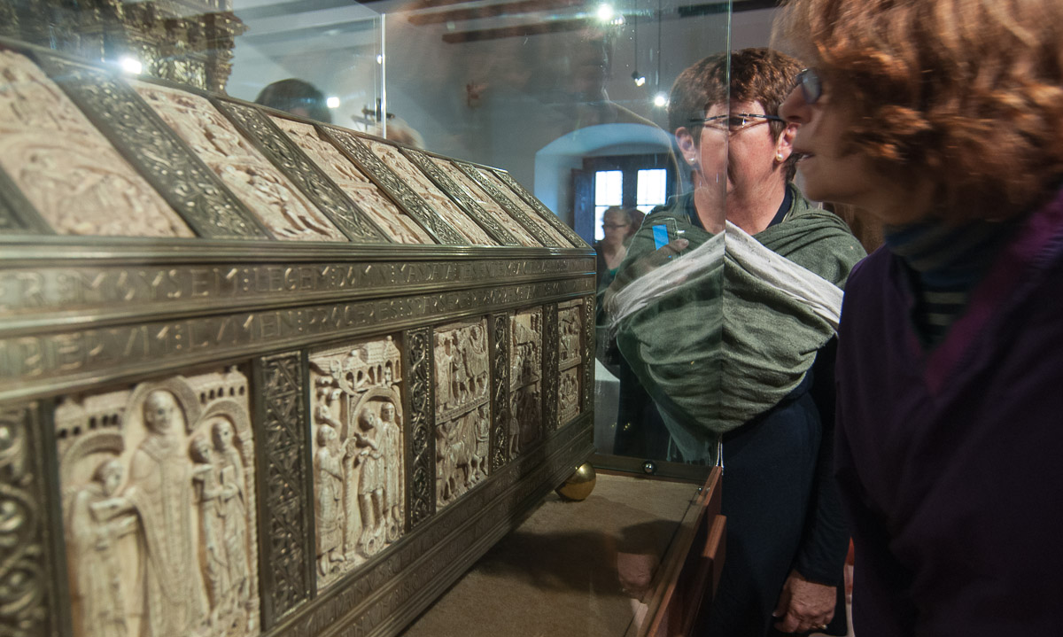En ese antiguo arcón con relieves de marfil se guardan los restos de San Millán