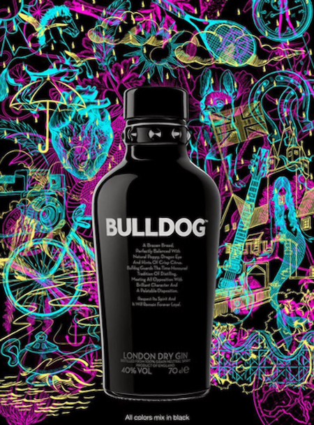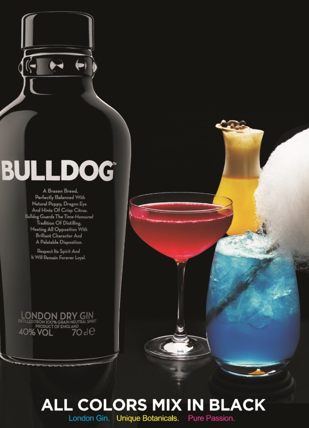 La ginebra Bulldog nació en 2006 y en menos de 4 años ya era mundialmente conocida y se convertía en la tercera más consumida. Su característico color negro, lejos de ser opaco y solemne, es la perfecta expresión del famoso ‘All colors mix in black’. Para obtenerlo se ha necesitado combinar una gran variedad de colores y sabores.