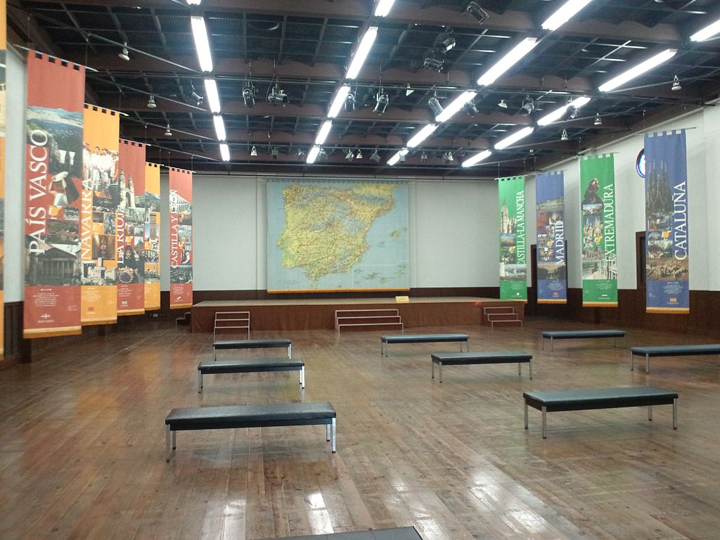El parque tiene una sana intención didáctica, como podemos ver en esta sala con un mapa y carteles de varias comunidades autónomas