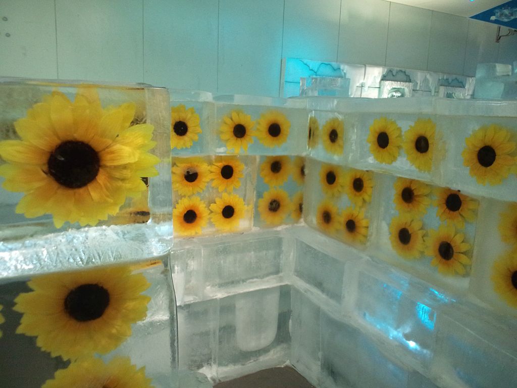El parque incluye un palacio de hielo, en el sentido literal: el interior es completamente de hielo. No es muy español, pero sí es fresquito