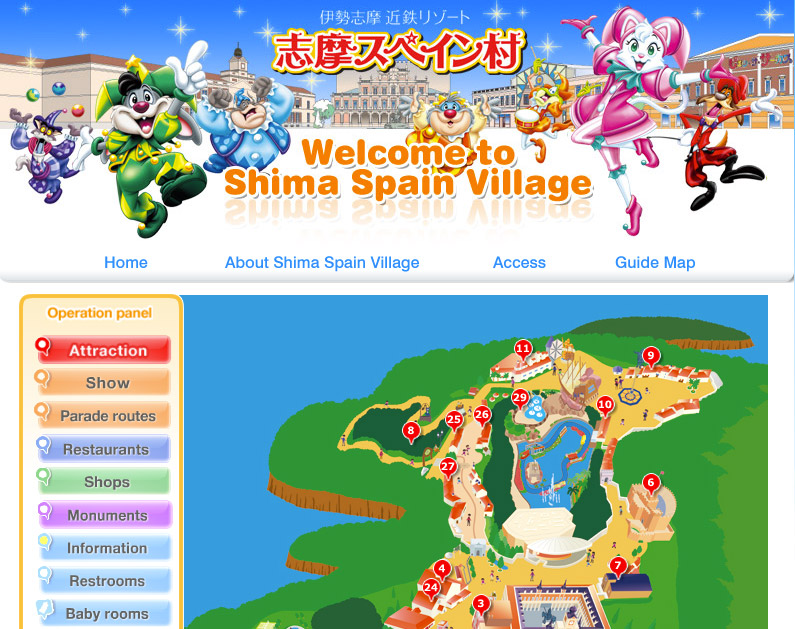 Shima Spain Village es un parque temático situado en el centro de la isla de Honshū, a unas tres horas de Kyoto y Osaka. Pretende ofrecer una experiencia de la cultura española y mezcla atracciones con espectáculos y reproducciones no demasiado fieles de monumentos españoles. En su página web, sin embargo, vemos que el look no parece demasiado español