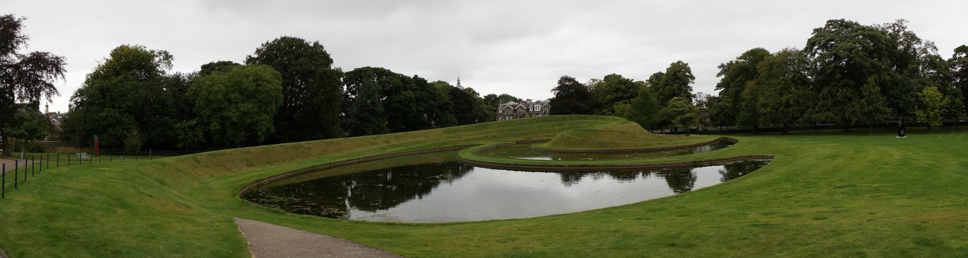 Edimburgo tiene varios museos dignos de una visita, repartidos casi todos entre el Old Town y el New Town. Para este, sin embargo, tendremos que alejarnos algo del centro, por lo que quizá no sea tan conocido. Al margen de su colección, que al parecer de quienes saben de esto es buena, lo más destacable son los amplios jardínes escultóricos presididos por esta obra del arquitecto Charles Jencks, responsable también del Jardín de la Especulación Cósmica.