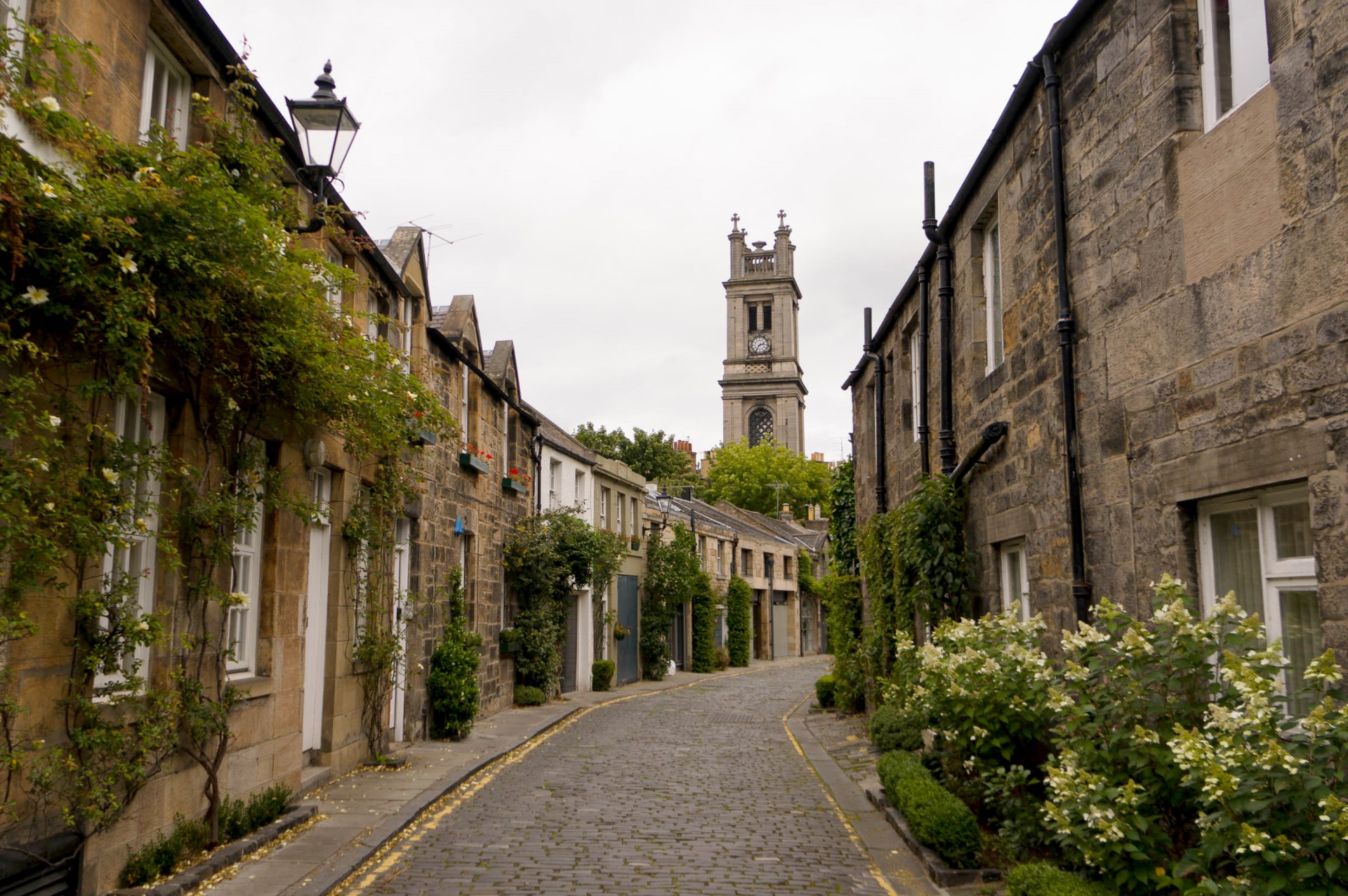 El barrio de Stockbridge es recomendable especialmente a quienes les guste escarbar en las tiendas de caridad, que ocupan casi por entero su calle principal, donde los escoceses donan ropa, libros, juegos, etc. para que distintas organizaciones como Oxfam recauden fondos vendiéndolos. Pero rebuscando se puede encontrar la que quizá sea la calle residencial más bonita de Edimburgo. Originalmente era un mews, la parte de atrás de una calle importante donde estaban los establos y, encima, las habitaciones del servicio.