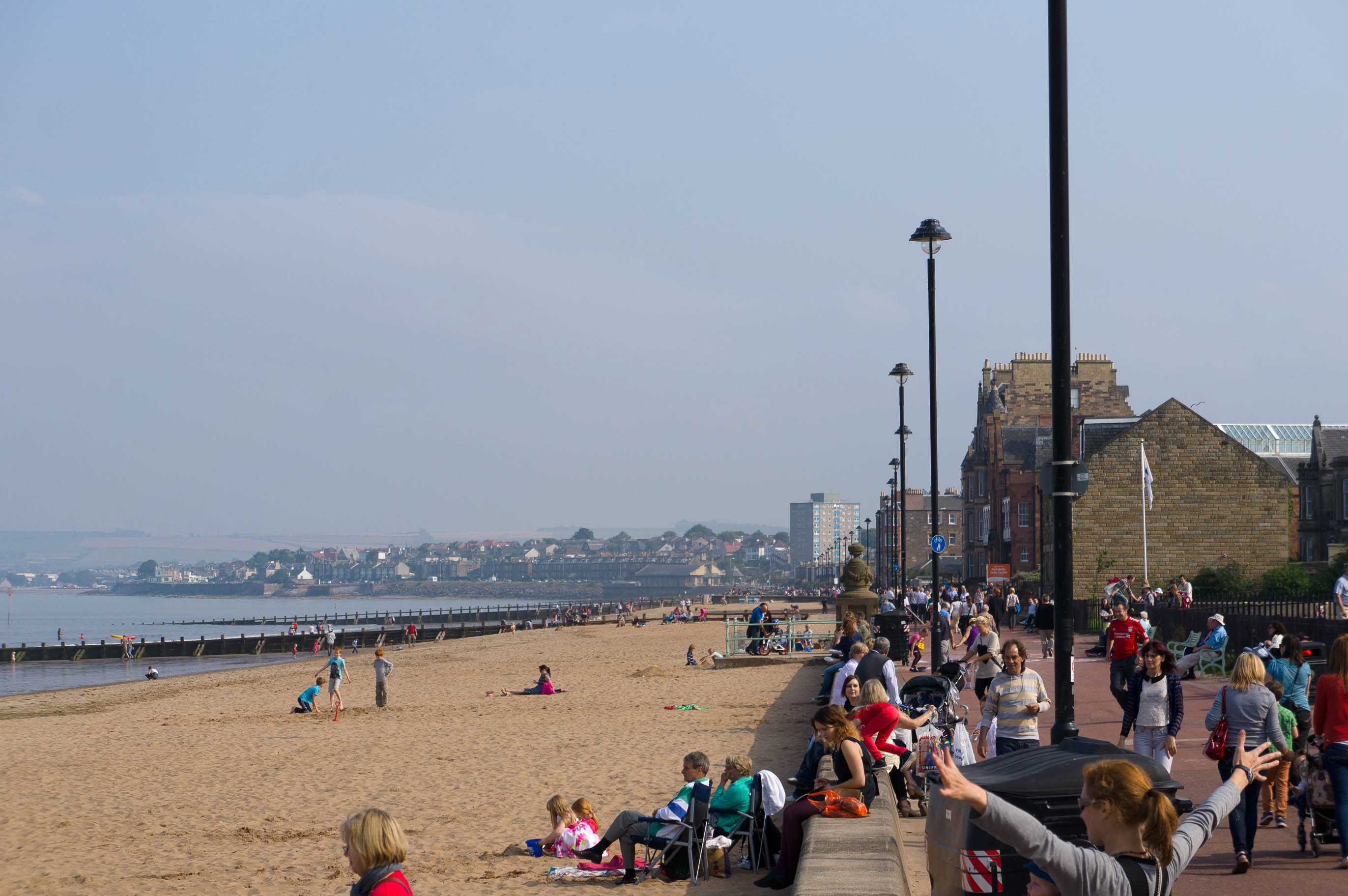 Aunque parezca increíble, Edimburgo también tiene su playa con su paseo marítimo y todo. Muy popular entre la población local a finales del XIX y principios del XX, fue decayendo según los escoceses empezaron a poder permitirse ir a una playa en condiciones, con buen tiempo y eso. Ha recuperado algo de popularidad en los últimos años y en los días soleados está bastante concurrida, aunque muchos locales siguen abandonados.