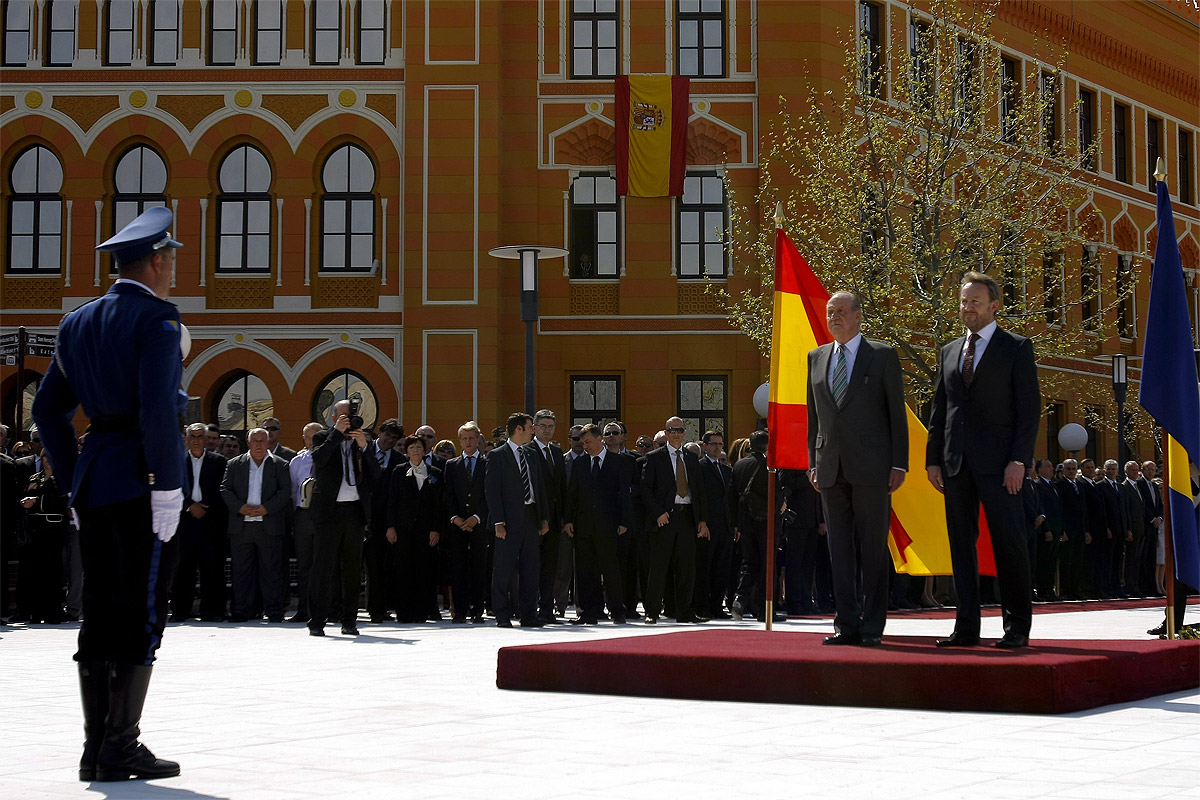 La de Móstar, en Bosnia-Herzegovina, es probablemente la última plaza dedicada a España fuera de nuestras fronteras. Se debe a la actuación de las tropas españolas acantonadas en la ciudad tras la guerra de Yugoslavia y al agradecimiento por una labor que fue excelente y que reconoció toda la población. Aunque ya llevaba unos años construida, el Rey la inauguró en marzo de 2012, momento que recoge la imagen