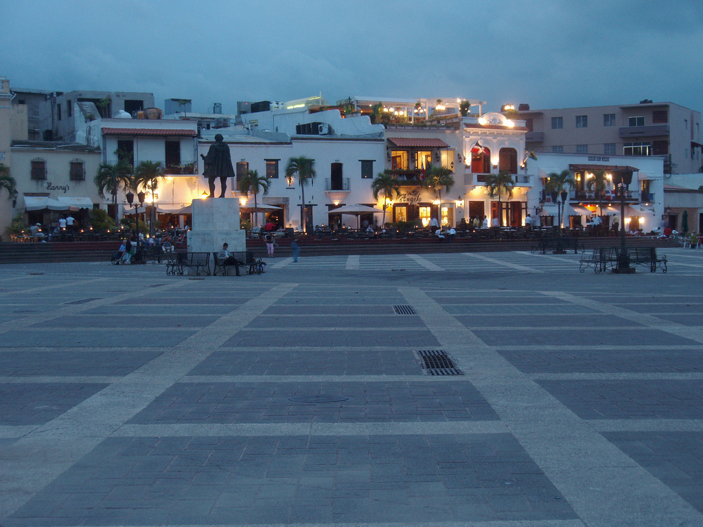 La Plaza de España de Santo Domingo sí es una de las más importantes de la ciudad. En ella está el Museo Alcázar de Colón y muy cerca el Museo de las Casas Reales. La estatua de la imagen está destinada a Fray Nicolás de Ovando, uno de los primeros gobernadores españoles de la isla