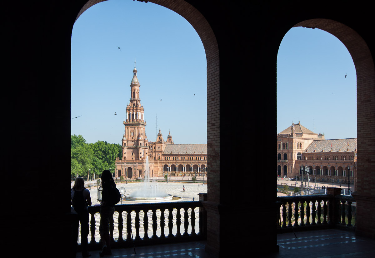 Quizá es la única plaza de España del mundo que puede competir en belleza con la de Roma. Se construyó con motivo de la Exposición Iberoamericana de 1929 y es obra del arquitecto sevillano Aníbal González. Es considerado el más importante ejemplo de la llamada arquitectura regionalista y, si no era ya suficientemente conocida, ha sido escenario para el rodaje de grandes películas como Lawrence de Arabia o la saga moderna de La Guerra de las Galaxias