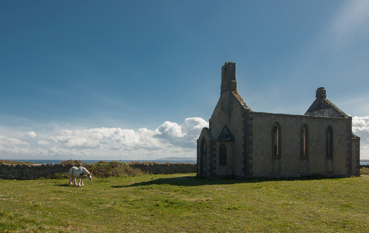 Una vieja historia semiderruida y un caballo percherón componen una estampa de lo más irlandesa