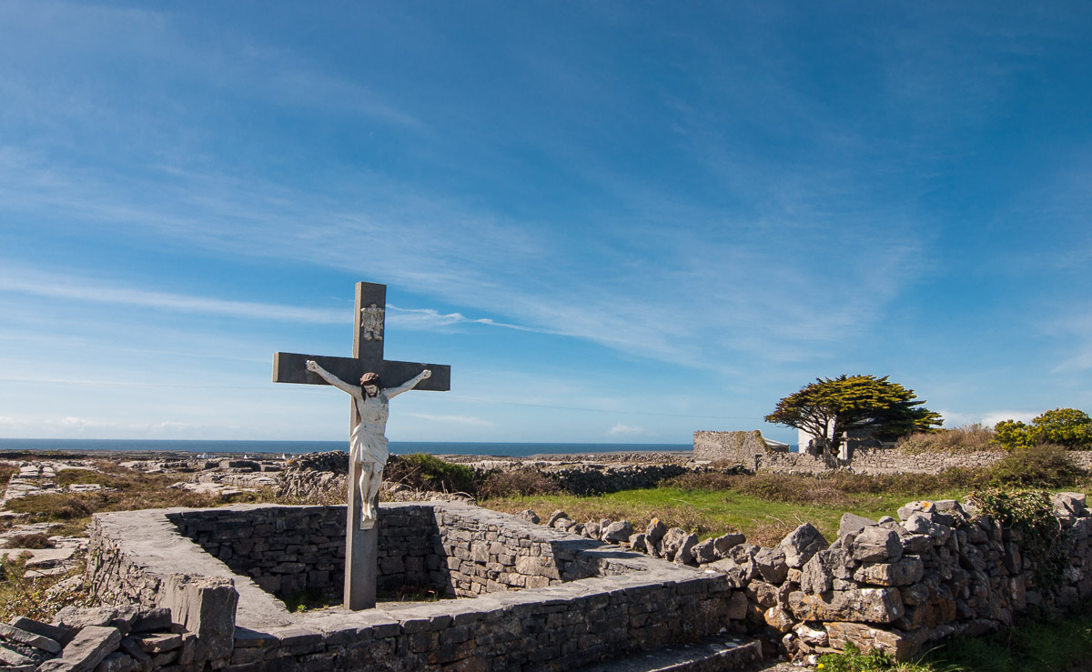 Algunas cruces como la de la imagen recuerdan en diversos puntos de Inishmore a los lugareños que perdieron su vida en el mar