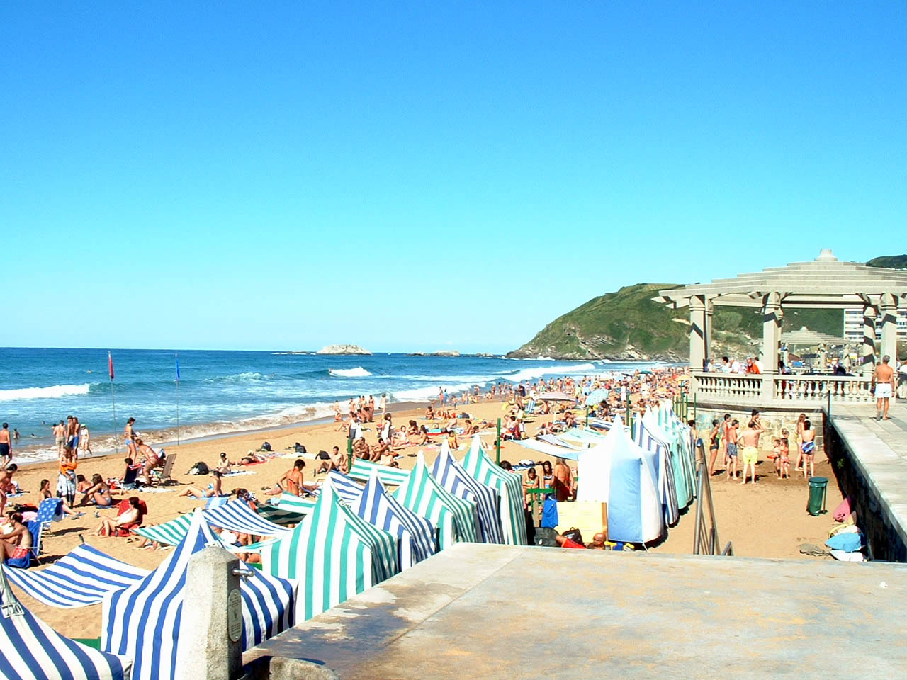 Una de las playas más glamurosas del País Vasco y de España. Con sus dos kilómetros y medio de extensión es perfecta para practicar surf gracias a sus grandes olas.
