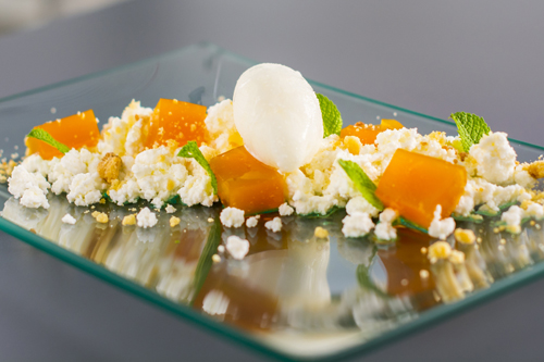 Por ejemplo, en la carta se puede encontrar gazpacho de cerezas con helado de genjibre y trata de langostinos.