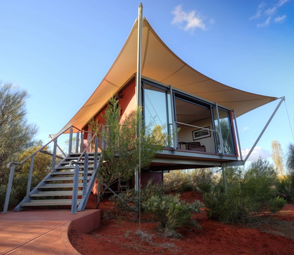 En el parque natural de las Torres del Paine se hallan estos bungalows, que esconden en su interior todas las comodidades de un gran hotel. Levantando las lonas exteriores, los bungalows se convierten en miradores con bellas vistas al valle