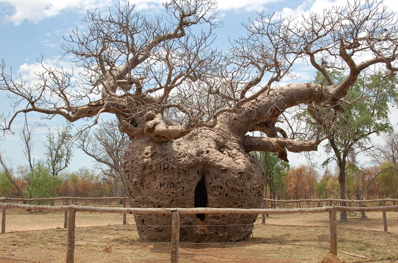 Un baobab con el tronco hueco es el árbol más popular de Australia. Cuentan que a finales del XIX su interior fue utilizado para encerrar a unos aborígenes por robar unas cabezas de ganado.