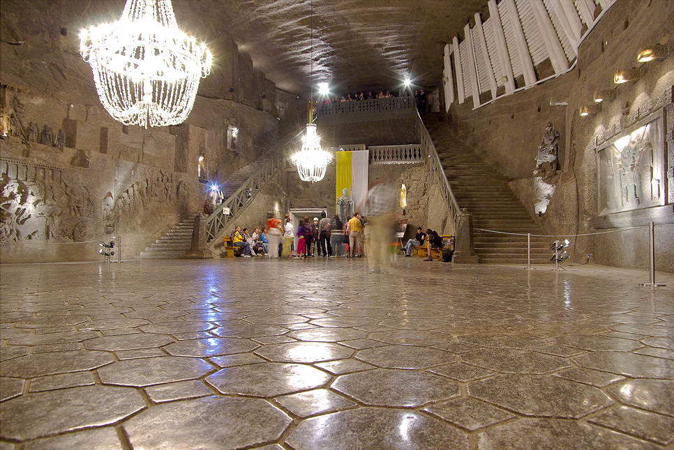 Las minas de sal de Wieliczka, situada en la ciudad polaca de Wieliczka han sido explotadas sin interrupción desde el siglo XVII. Alcanzan una profundidad de 327 metros y su longitud supera los trescientos kilómetros. Reciben el sobrenombre de "la catedral subterránea de la sal de Polonia".