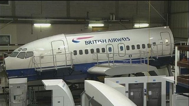 "Empezamos con una evacuación, la gente debe pensar en ello, explica Andy Clubb, de British Airways. Lo que aprenden los participantes es a diseñar un plan gracias a este ejercicio. Lo más importante es cuando deben abandonar el avión lanzándose por el tobogán con los brazos cruzados. También aprenden a salir del avión abriendo las puertas de emergencia que se encuentran sobre las alas".