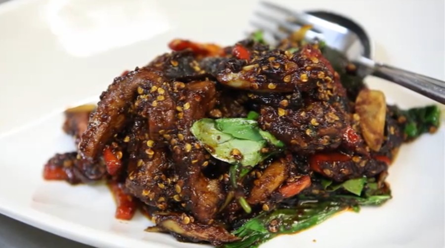Este plato picante es mucho más simple que la mayoría de su clase. Para preparar el Neue Pad Prik, el cocinero sólo arroja algunas unos pedazos de carne en una sartén y le añade hierbas y chalotes, la albahaca. Luego, echa ajo y finalmente añade los chiles llamados de ojo de pájaro que son su ingrediente principal. Este plato es muy conocido en en Asia, particularmente en Tailandia e Indonesia.