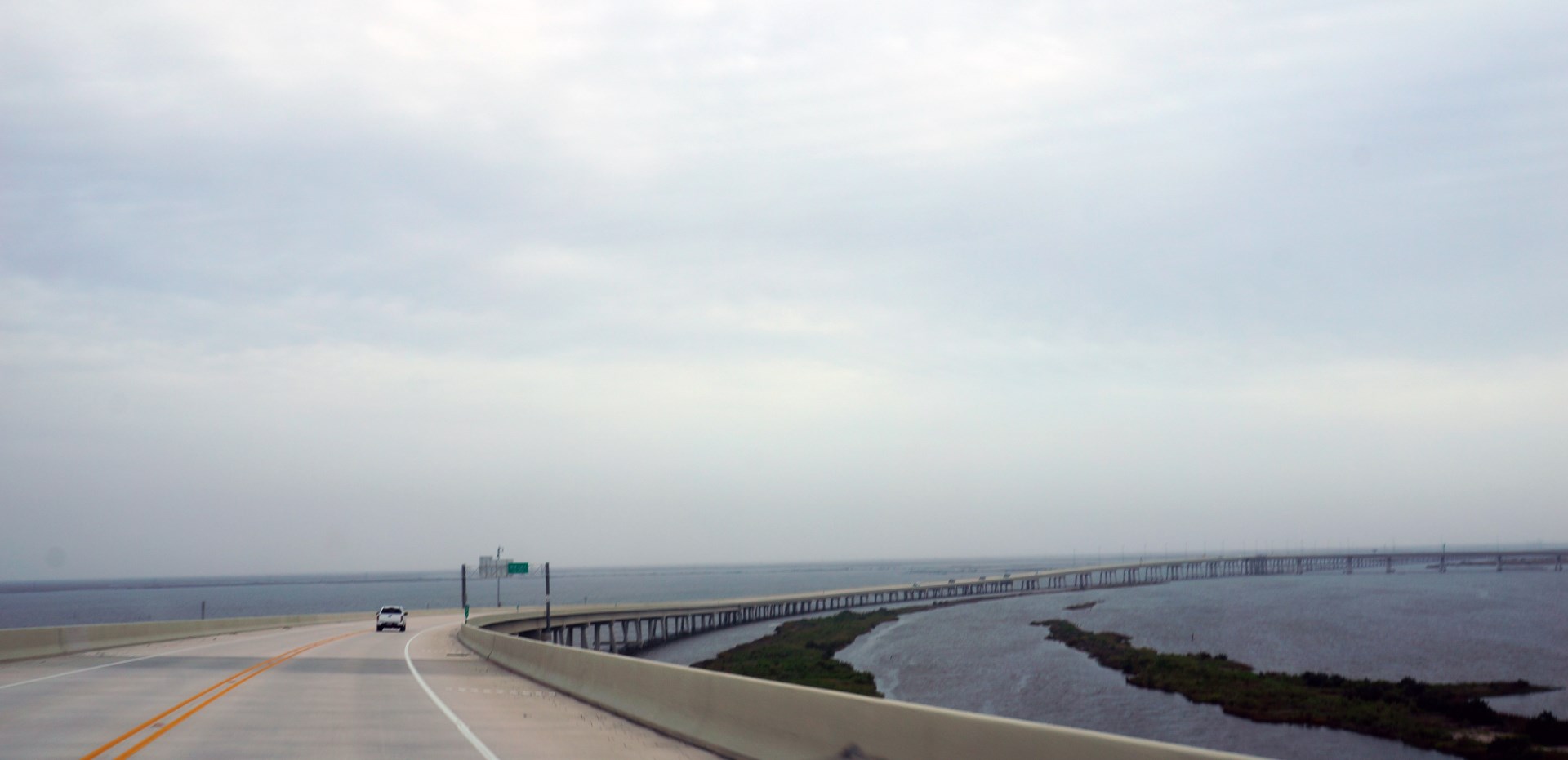 Dos puentes paralelos para el tráfico rodado de 29,2 kilómetros de longitud entre Baton Rouge y Lafayette, también en Luisiana. Inaugurados en 1973, son un punto negro de las carreteras del estado al ser los carriles muy estrechos y carecer de arcenes.