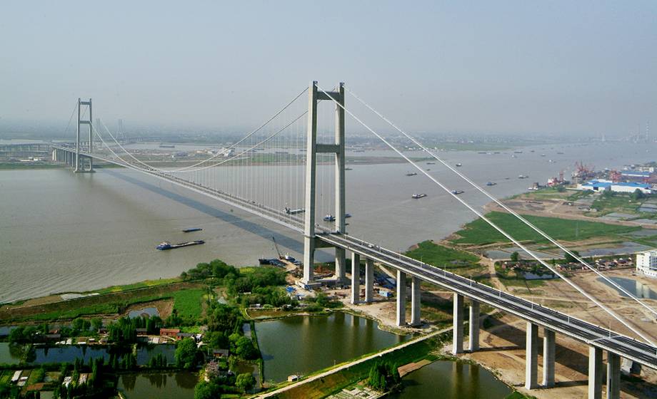 Este puente de 35,6 kilómetros entre Zhenjiáng y Yangzhóu incluye dos puentes principales sobre el río Yangtsé: el del sur es colgante (en primer plano en la fotografía) y el segundo atirantado (al fondo). Fue inaugurado en 2005 y su construcción costó unos 700 millones de dólares.