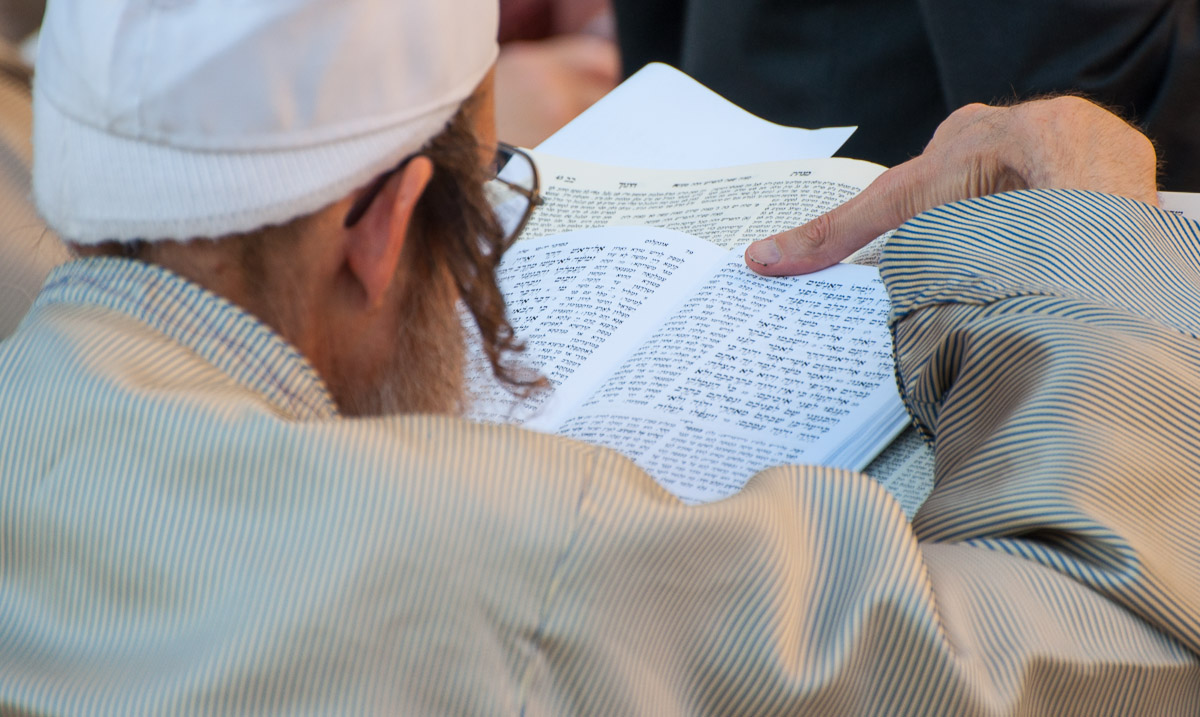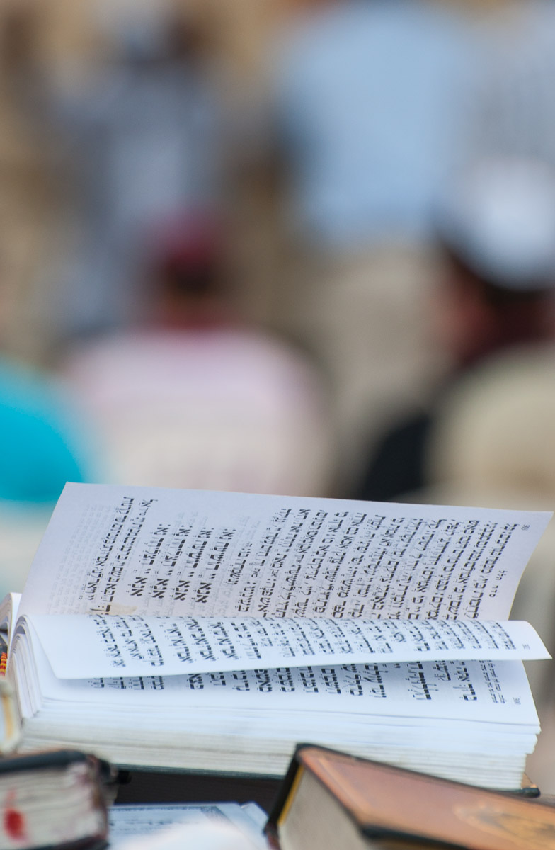 Un hombre lee textos sagrados, en el Muro no hay ceremonias organizadas similares a una misa, cada creyente o grupo de creyente reza a su modo y muchos, simplemente, están allí