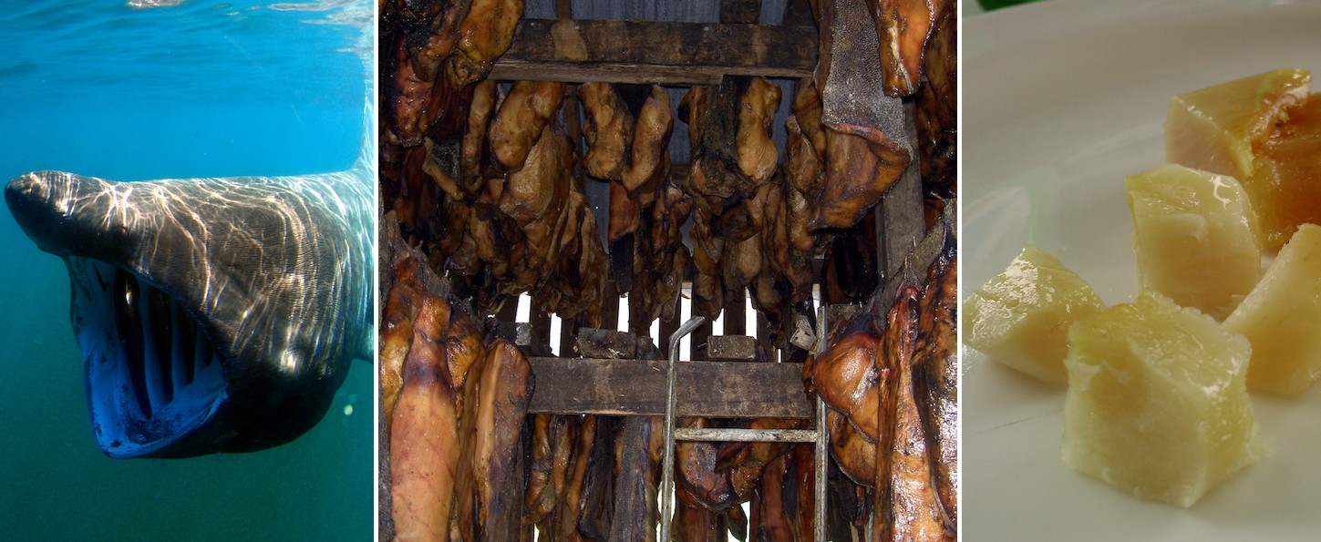 Es un plato tradicional islandés elaborado a base de carne de tiburón literalmente podrida. Aunque algunos islandeses sí que consumen este plato tradicional, muchos lo encuentran asqueroso. Una de las cosas más curiosas de este alimento es que está elaborado a partir de carne de "tiburón peregrino", un escualo que carece de riñón y tracto urinario, por lo que su carne está contaminada. La leyenda cuenta que los antepasados de los islandeses quisieron emplearlo como alimento, pero al ingerirlo se infectaban con las toxinas del tiburón y morían. Así fue como decidieron enterrarlo durante tres meses para que se pudriera. Las bacterias eliminan las toxinas del escualo que tras ser desenterrado se deja secar al aire. De este modo, su carne atraviesa un proceso de curado de al menos seis meses para que sea apto para el consumo humano. Eso sí, se seca lejos de las zonas habitadas por el hombre, debido al desagradable olor que desprende. Es parecido al kiviaq (pájaros podridos curados dentro de la piel de una foca) que hacen los Inuits de Groenlandia. En el hákarld la carne mantiene después un fuerte sabor a amoniaco y un olor putrefacto. Hay dos tipos de hákarl: rojo, procedente de la tripa, y skyr, que significa algo así como "yogur".
