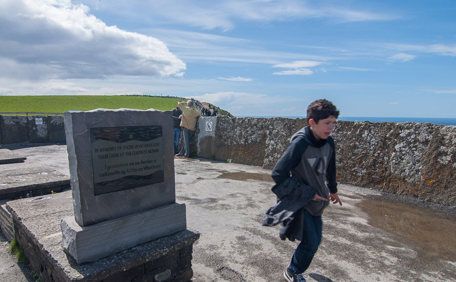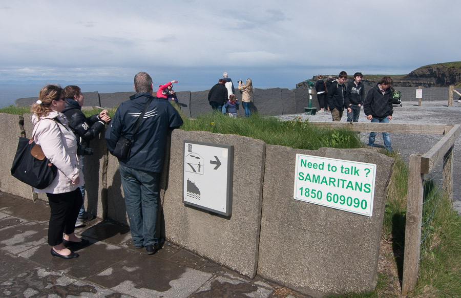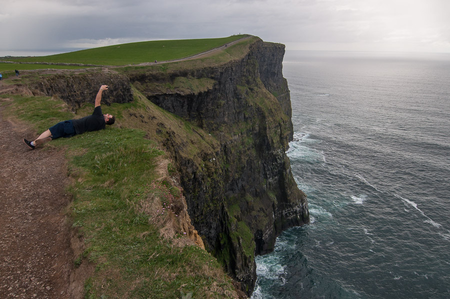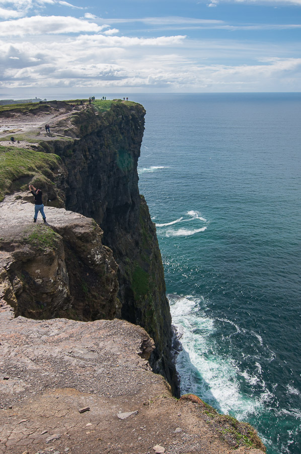 Una de las cosas inquietantes de una visita a los acantilados de Moher es la sensación de peligro que nos transmite la gente acercándose al borde