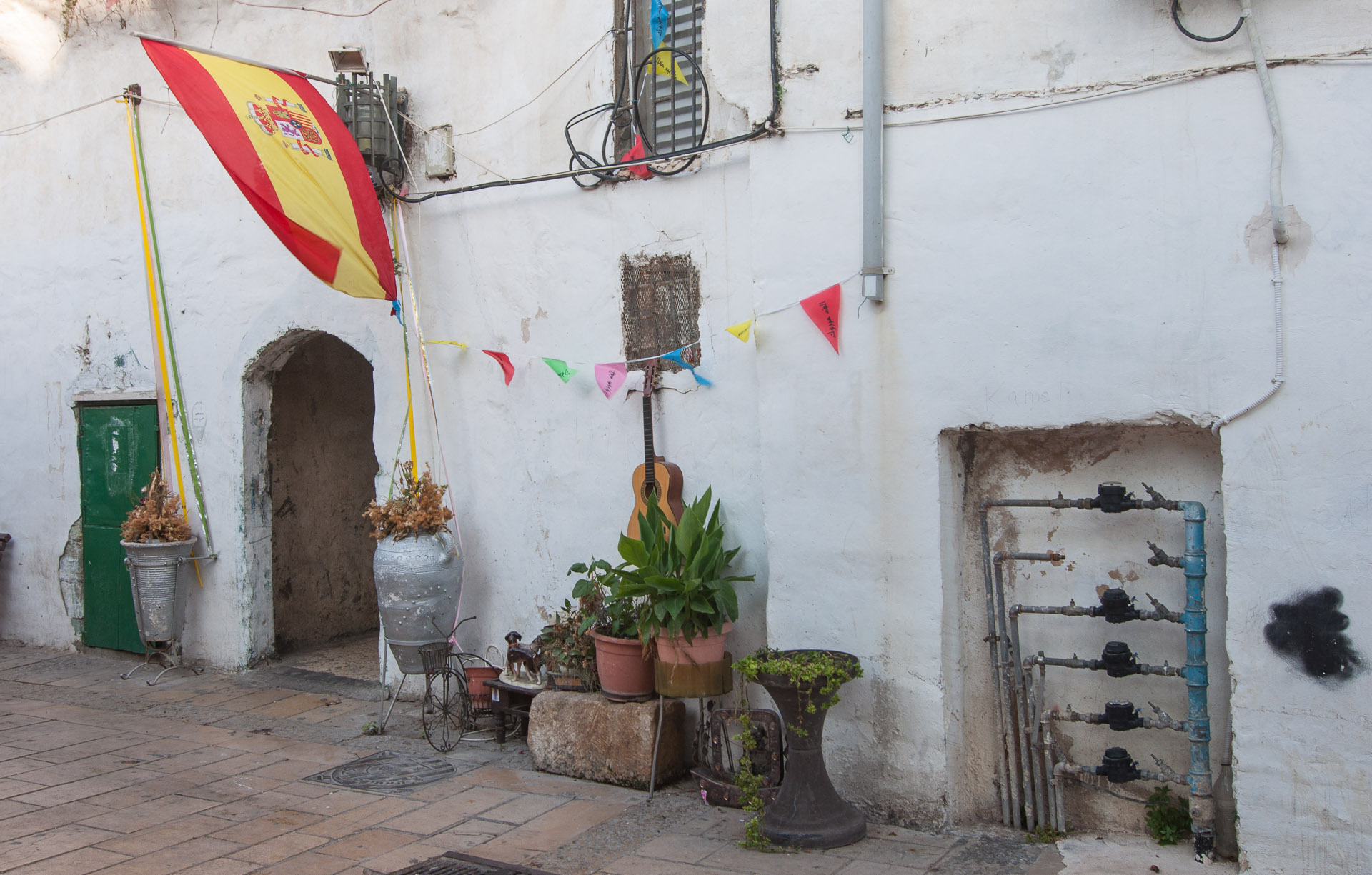 Un callejón y el pequeño minarete de una de las mezquitas en el centro de la ciudad