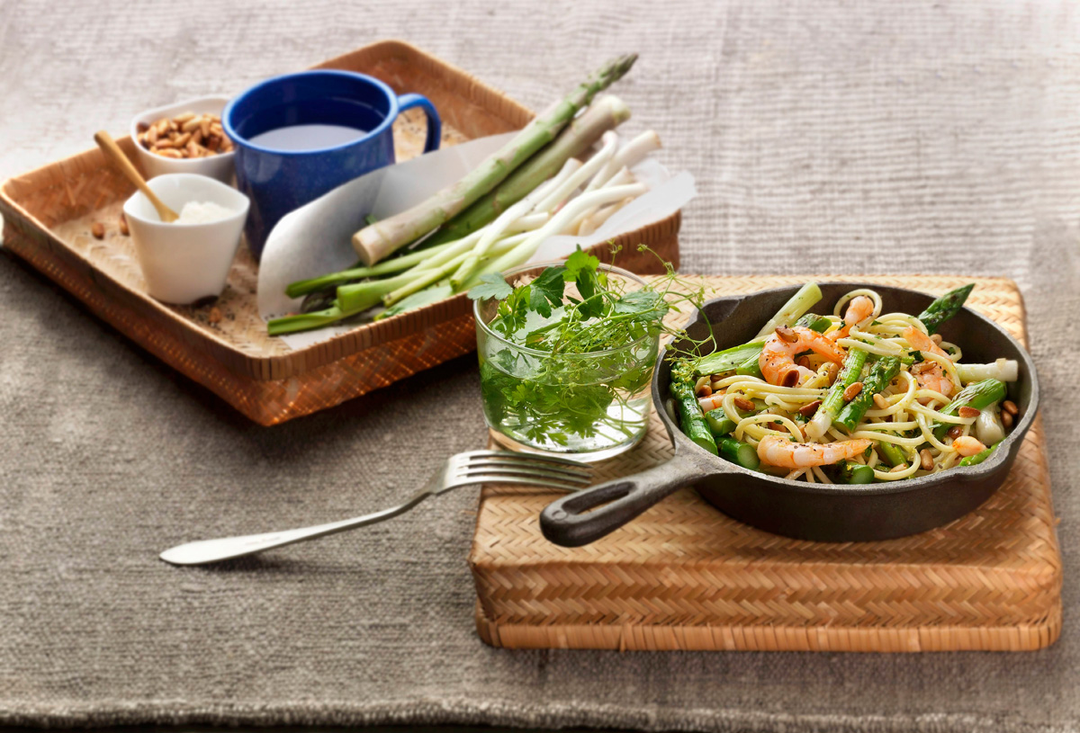 Espárragos verdes con ajoblanco de piñones - La Receta