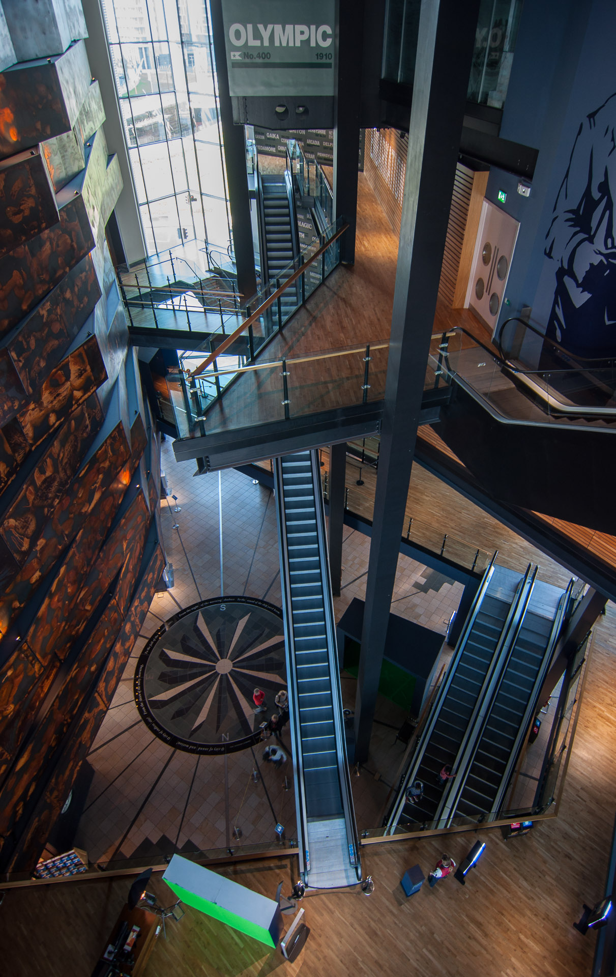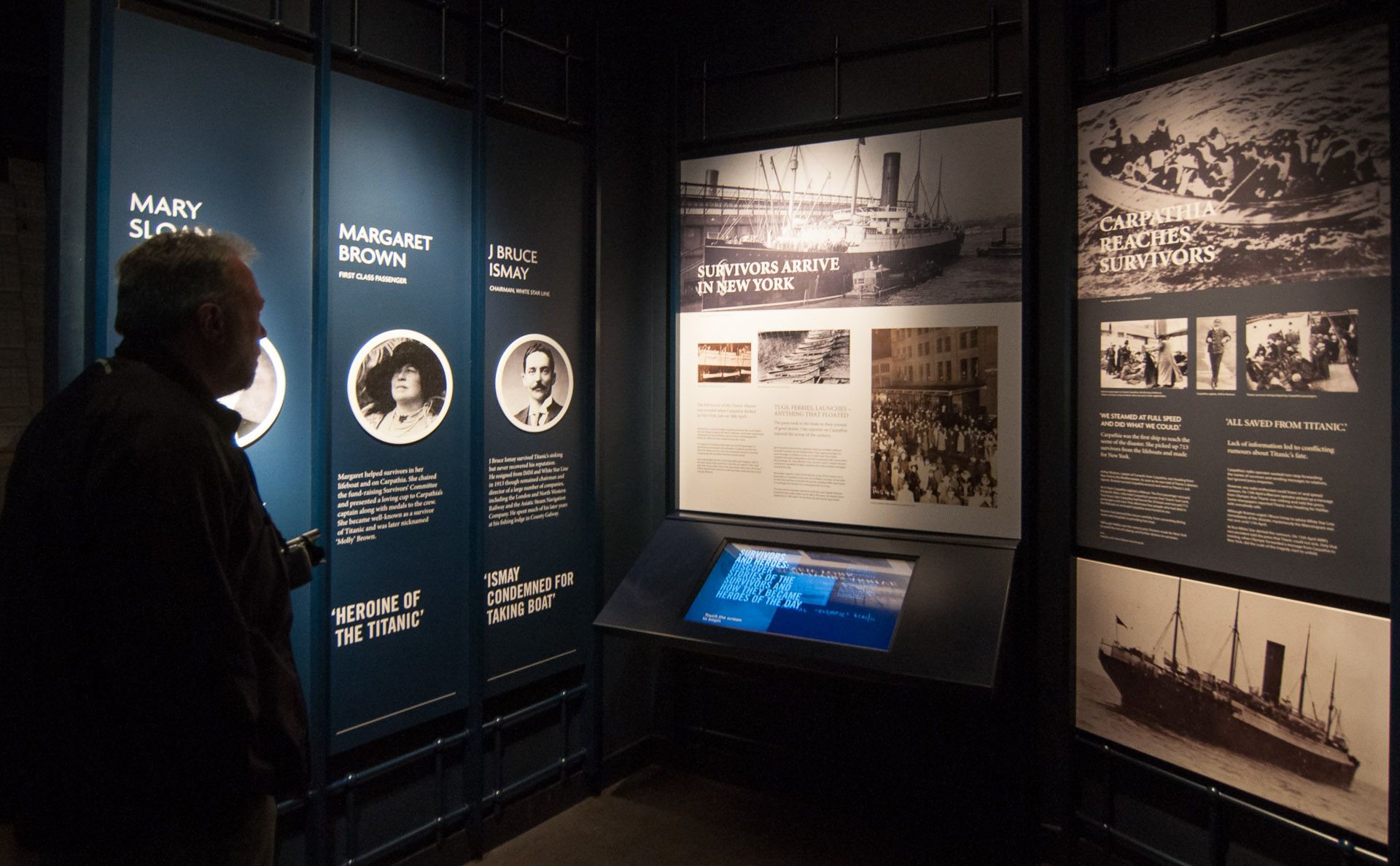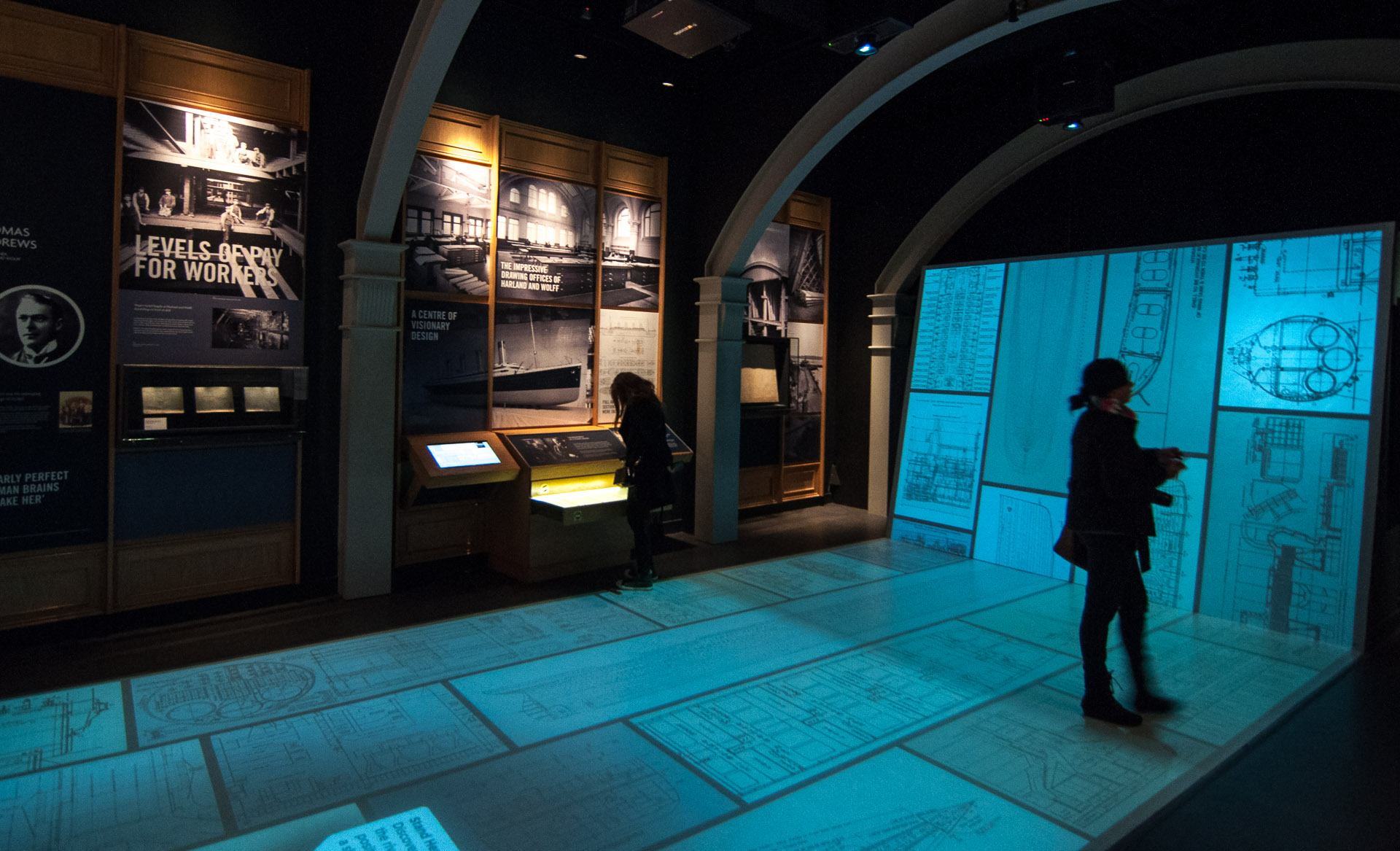La parte más baja del edifio recoge algunos datos relacionados con la historia del Titanic, como que 100.000 personas asistieron a la botadura, un 31 de mayo de 1911
