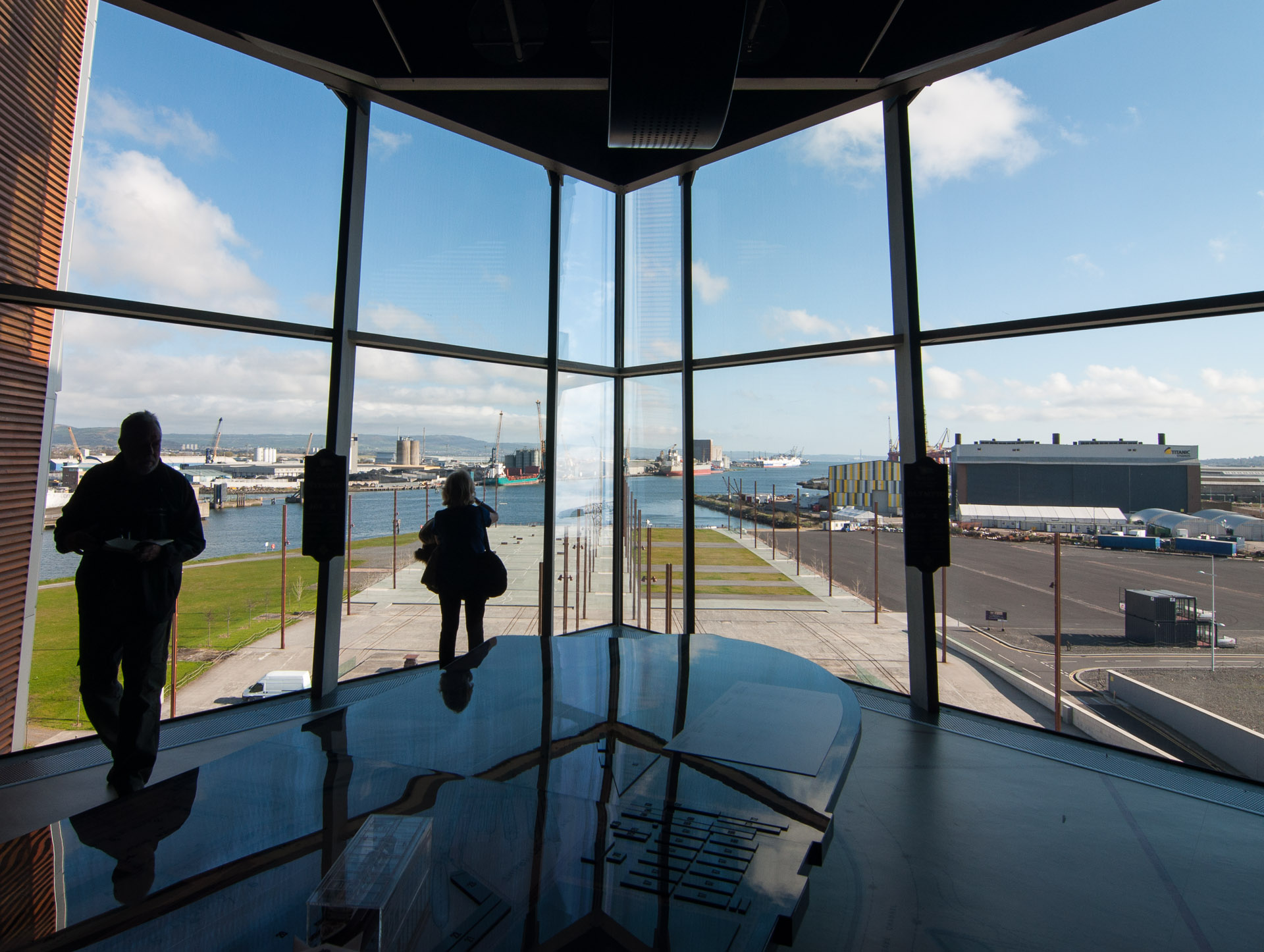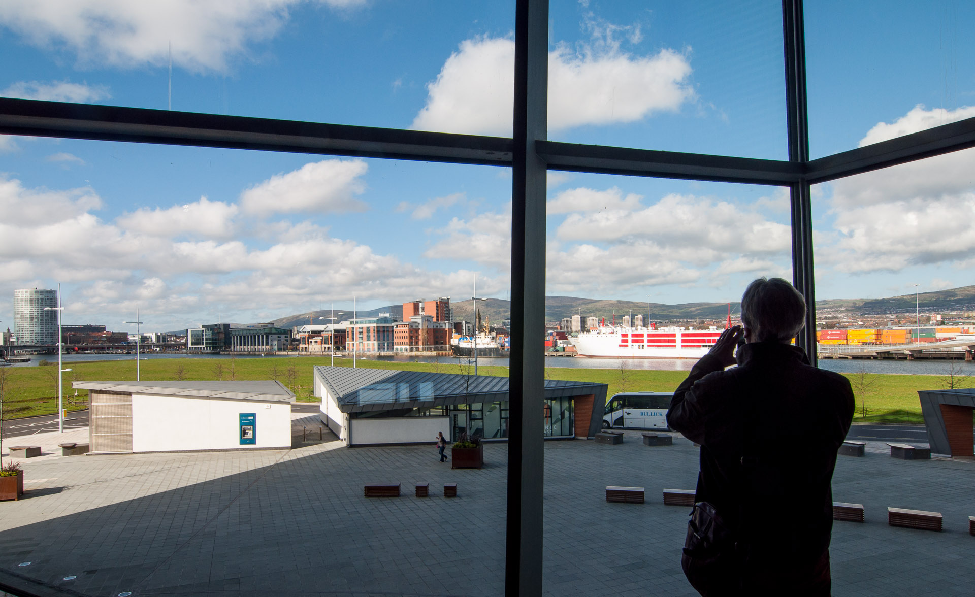 Otra de las vistas del puerto de Belfast dede el interior del edificio