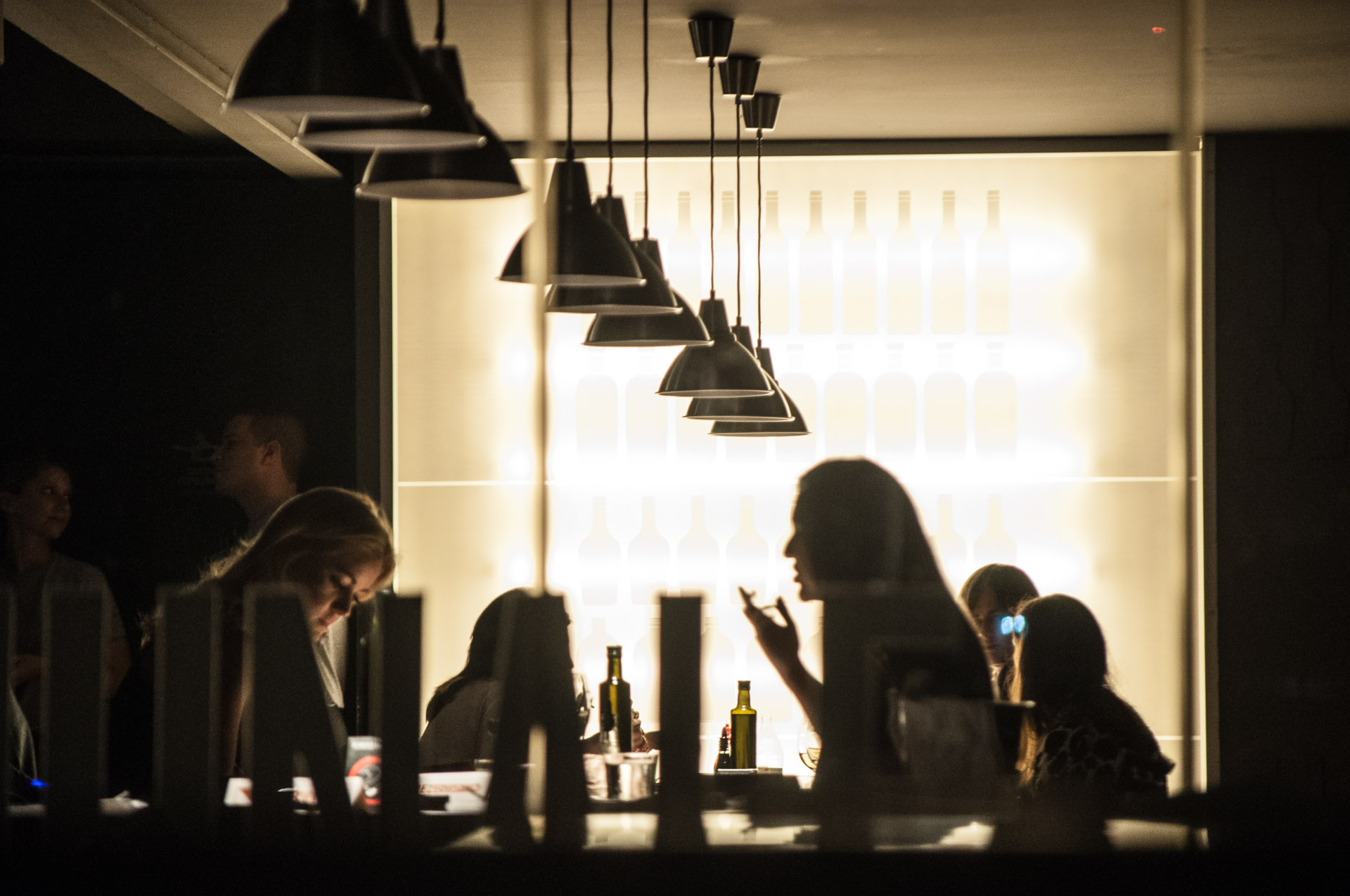 Dos mujeres cenan en el interior de un moderno restaurante a las orillas del Danubio. En la zona más chic de la ciudad.