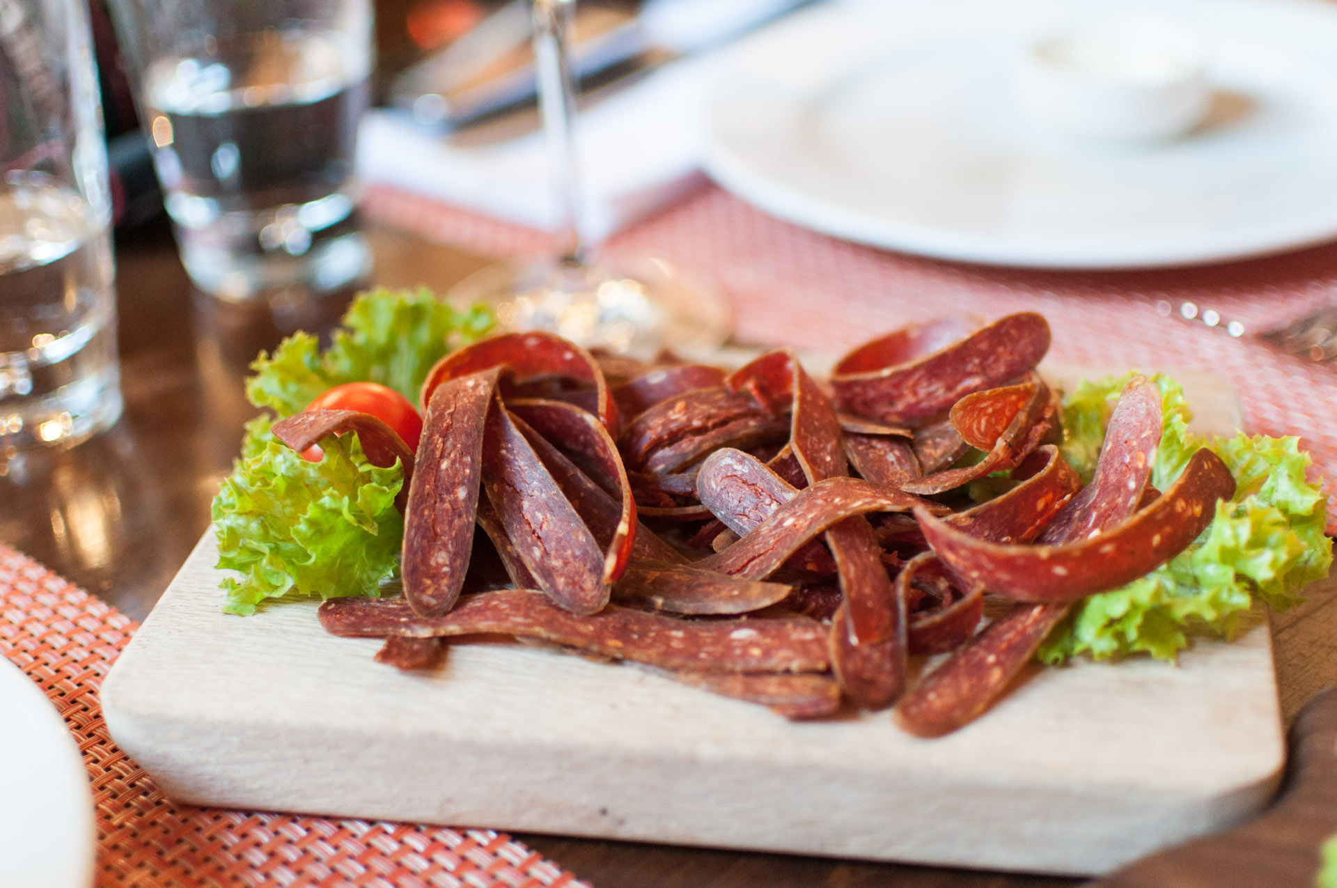 La gastronomía serbia destaca por su faceta más carnívora. En la foto unas lonchas de un alimento similar al chorizo español, pero con un sabor mucho más especiado.