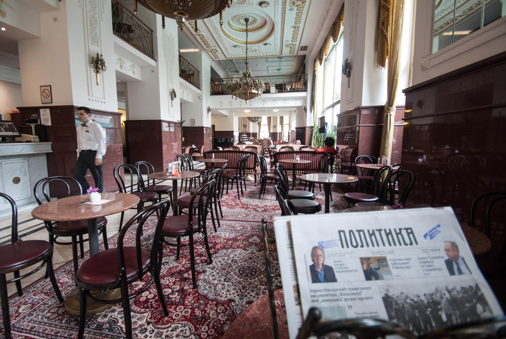 Interior de la genuina cafetería del Hotel Moscú, una atmósfera evocadora de tiempos mejores.