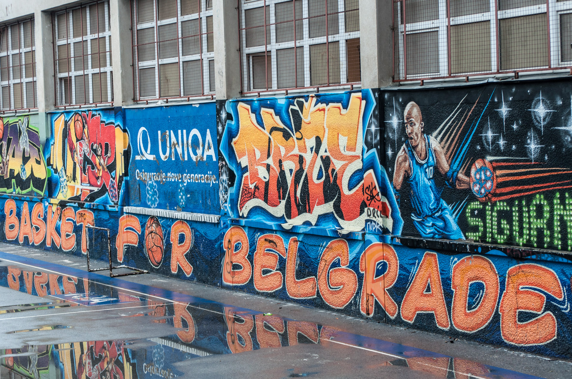 El baloncesto es un deporte muy practicado en toda Serbia y prueba de ello es este mural en un colegio público de Belgrado.